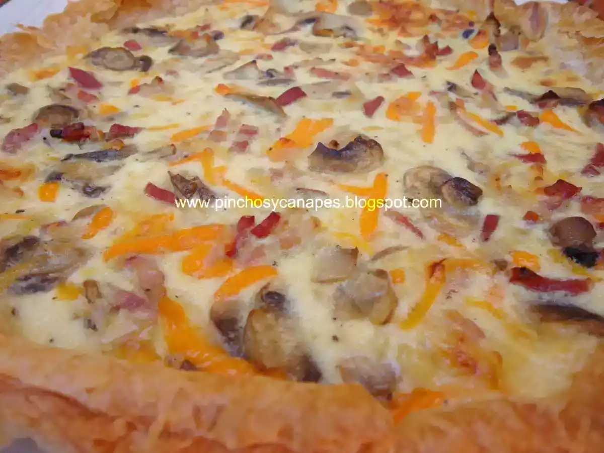 Quiche de champiñones AnteriorSiguiente PlatoFácil35 min1392 Kcal Enviar esta receta a un amigo Imprimir esta página Preguntar al autor Publicar la foto de esta receta Ingredientes 2 250g de Champiñones cortados en láminas 100g de Bacon picado 1/2 cebolla muy picad 200ml de Nata para Cocinar 3 Huevos 1 bolsa de varios quesos rallados (180g aprox) 2 Cucharadas de Aceite de Oliva Virgen Extra Sal Pimienta 1 Lámina de Hojaldre fresco Costo estimado: 5.49Euros€ (2.75€/porción)