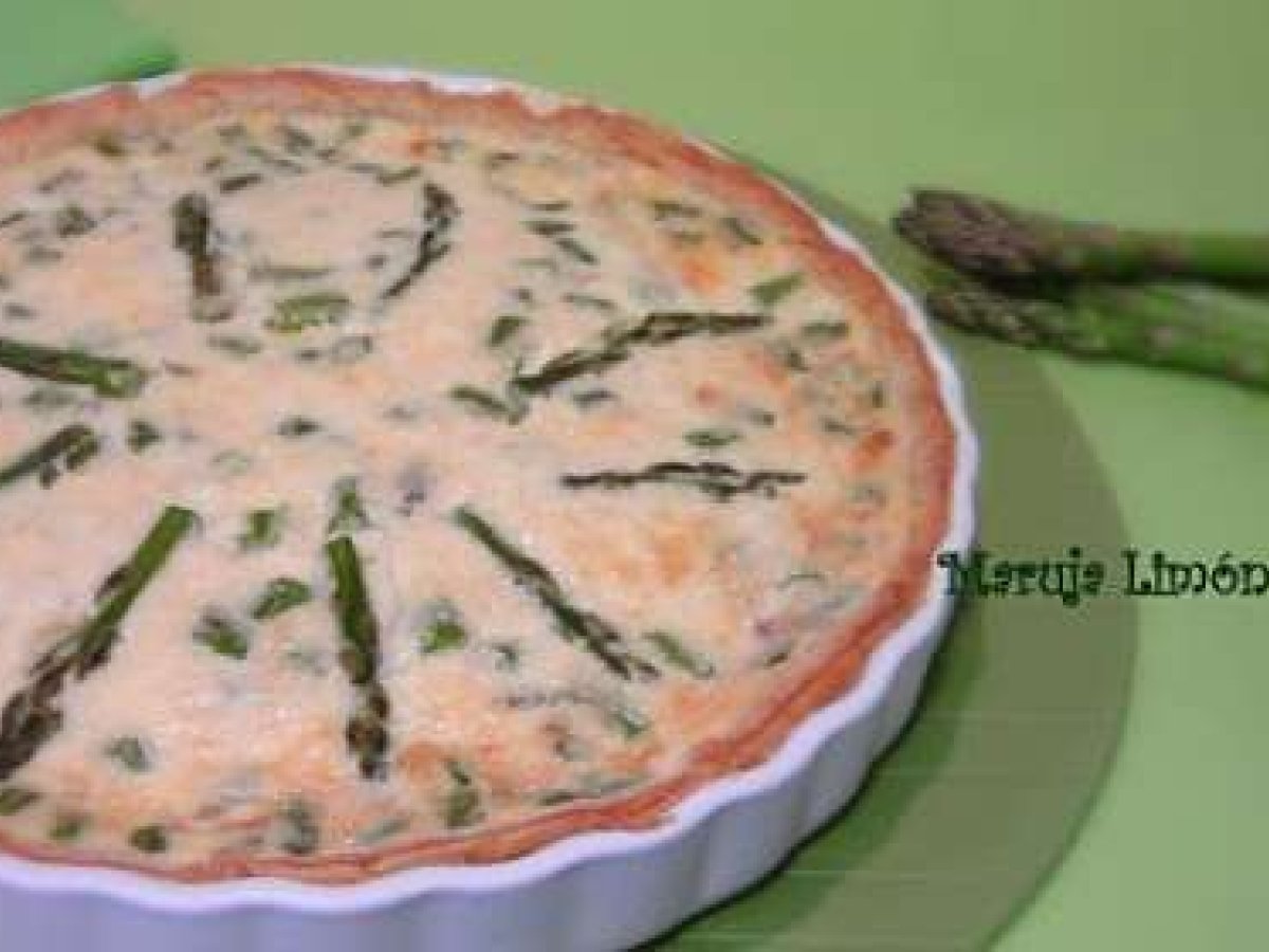 Quiche de espárragos y atún PlatoMedio50 min347 Kcal Enviar esta receta a un amigo Imprimir esta página Preguntar al autor Publicar la foto de esta receta Ingredientes 8 1disco de masa quebrada refrigerada 3 huevos 2 latitas de atún en conserva 1 manojo de espárragos verdes 1 vaso de nata líquida 200 g de queso rallado 1 nuez de mantequilla Sal y pimienta Costo estimado: 7.85Euros€ (0.98€/porción)