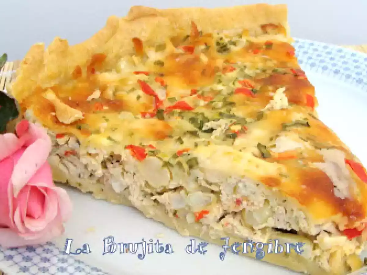 Quiche de pollo y choclo! el pollo siempre con muchas anécdotas... AnteriorSiguiente PlatoFácil20 min Enviar esta receta a un amigo Imprimir esta página Preguntar al autor Publicar la foto de esta receta Ingredientes 4 1 ½ taza de harina 80 g de margarina a temperatura ambiente 1 yema de huevo ½ taza de queso rallado 1 ó 2 cucharadas de agua helada 1 pizca de sal 20 g de margarina troceada ciboulette picado fino 1 pechuga de pollo cocida y picada en cuadritos 300 g de queso mozzarella rallado estilo juliana 150 g de granos de choclos cocidos ¼ de pimiento rojo picado en "cuadritos pequeños" ½ taza de crema 1/4 taza de leche 2 huevos 1 cucharada de cebollines picados muy fino