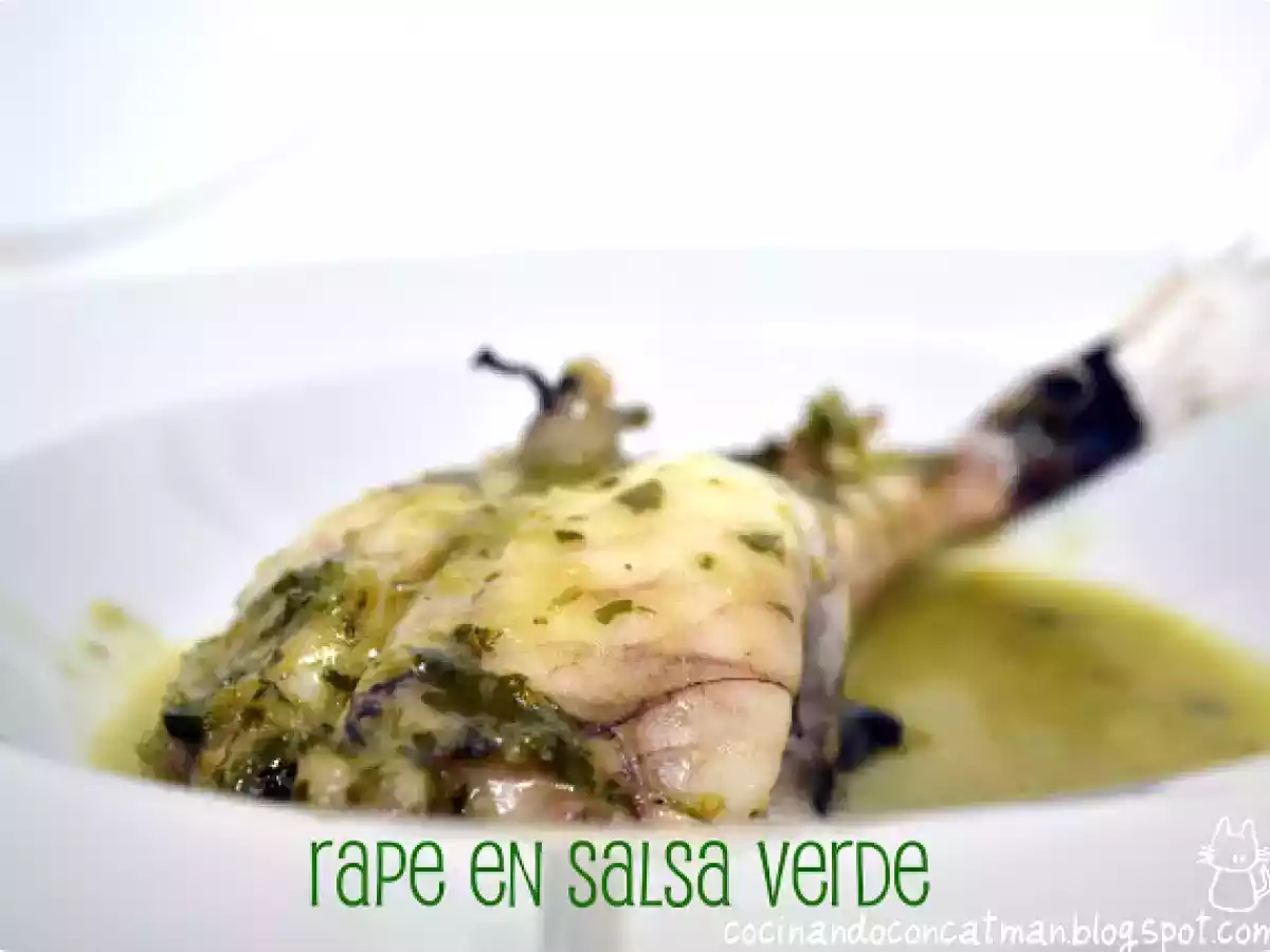 Rape en salsa verde PlatoFácil45 min557 Kcal Enviar esta receta a un amigo Imprimir esta página Preguntar al autor Publicar la foto de esta receta Para thermomix Ingredientes 2 1 manojo de perejil (sólo las hojas) 2/3 dientes de ajo 70 ml de aceite de oliva virgen extra 50 ml de vino blanco 200 ml de caldo de fumet de pescado (yo lo hice usando la cabeza) 500 gr de rape