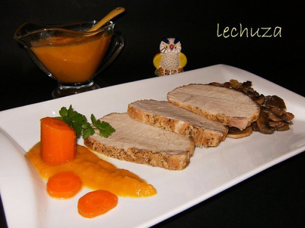 Receta navideña: lomo de cerdo asado con salsa de zanahorias AnteriorSiguiente PlatoFácil1 hora Enviar esta receta a un amigo Imprimir esta página Preguntar al autor Publicar la foto de esta receta Ingredientes 4 1 pieza lomo de cerdo fresco 2 cebollas grandes 4 zanahorias grandes 1 vaso de vino blanco sal, pimentón dulce orégano, ajo y aceite
