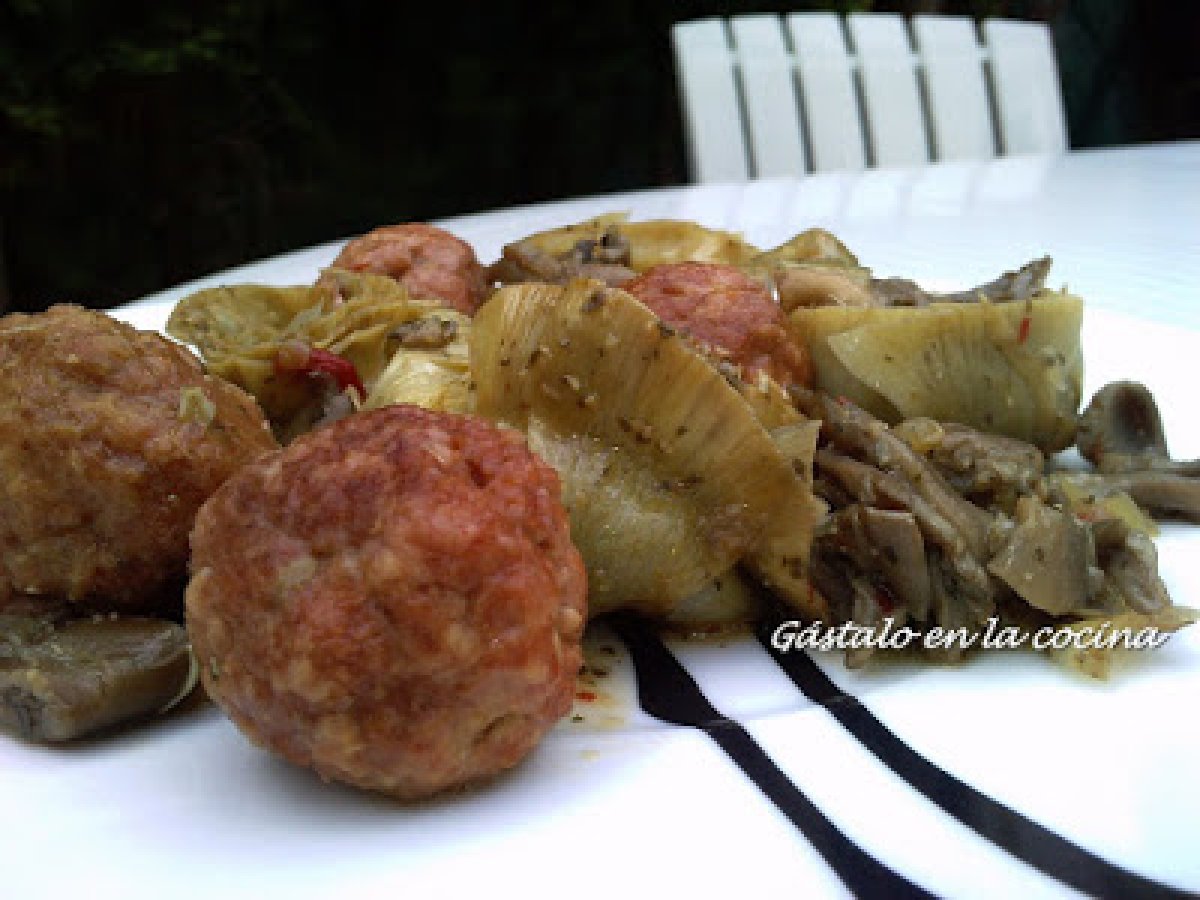Revuelto de alcachofas vota ahora PlatoMedio50 min641 Kcal Enviar esta receta a un amigo Imprimir esta página Preguntar al autor Publicar la foto de esta receta Ingredientes 4 16 alcachofas 400 gramos de carne picada de pollo/pavo 250 gramos de setas 1 cebolla mediana 3 pimientos choriceros ajo sal pimienta harina aceite de oliva