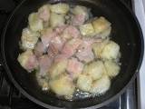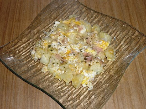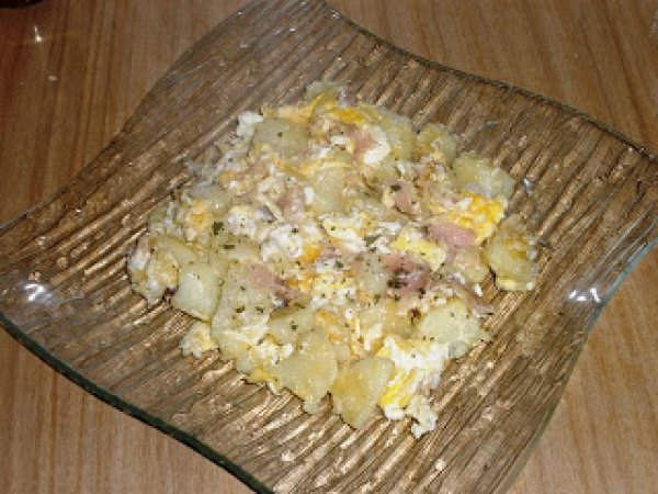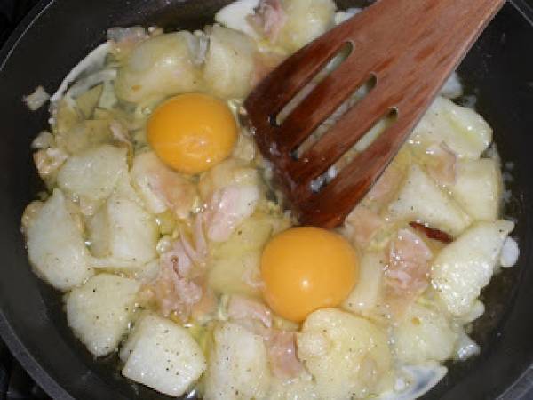 Revuelto de patatas al vino blanco vota ahora AnteriorSiguiente PlatoFácil45 min Enviar esta receta a un amigo Imprimir esta página Preguntar al autor Publicar la foto de esta receta Ingredientes 2 Patata cocida, cortada a tacos Jamón de york, cortado en trocitos 2 huevos 1 ajo en láminas 1 guindilla Aceite sal pimienta perejil 1 chorro de vino blanco
