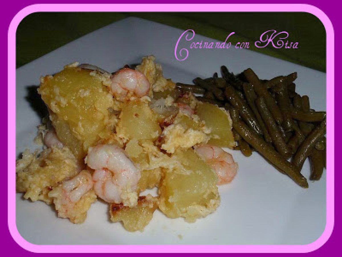 Revuelto de patatas con gambas (fussioncook) PlatoFácil25 min632 Kcal Enviar esta receta a un amigo Imprimir esta página Preguntar al autor Publicar la foto de esta receta Ingredientes 2 300 g de gambas congeladas 3 patatas 2 dientes de ajo 50 ml de aceite de oliva 2 huevos Sal Costo estimado: 6.29Euros€ (3.15€/porción)