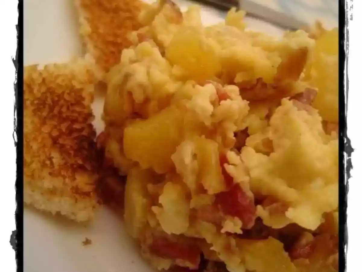 Revuelto de patatas y calabacín AnteriorSiguiente PlatoFácil15 min1753 Kcal Enviar esta receta a un amigo Imprimir esta página Preguntar al autor Publicar la foto de esta receta Con salsa sauja y ketchup para colmar el gusto! Ingredientes 1 4 patatas medianas 1 calabacín 1 cebolla 2 dientes de ajo 150 g de jamón serrano picadit 5 huevos 4 rebanadas de pan de molde Aceite sal perejil Costo estimado: 7.48Euros€ (7.48€/porción)