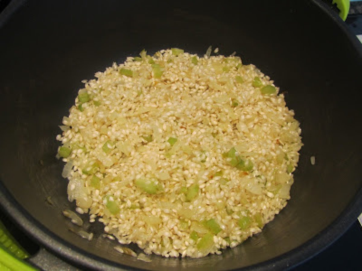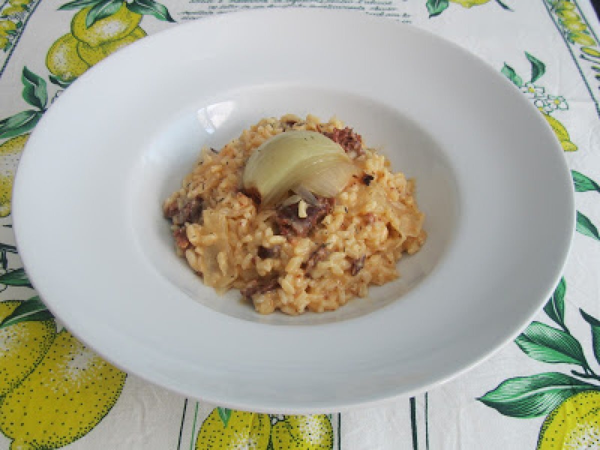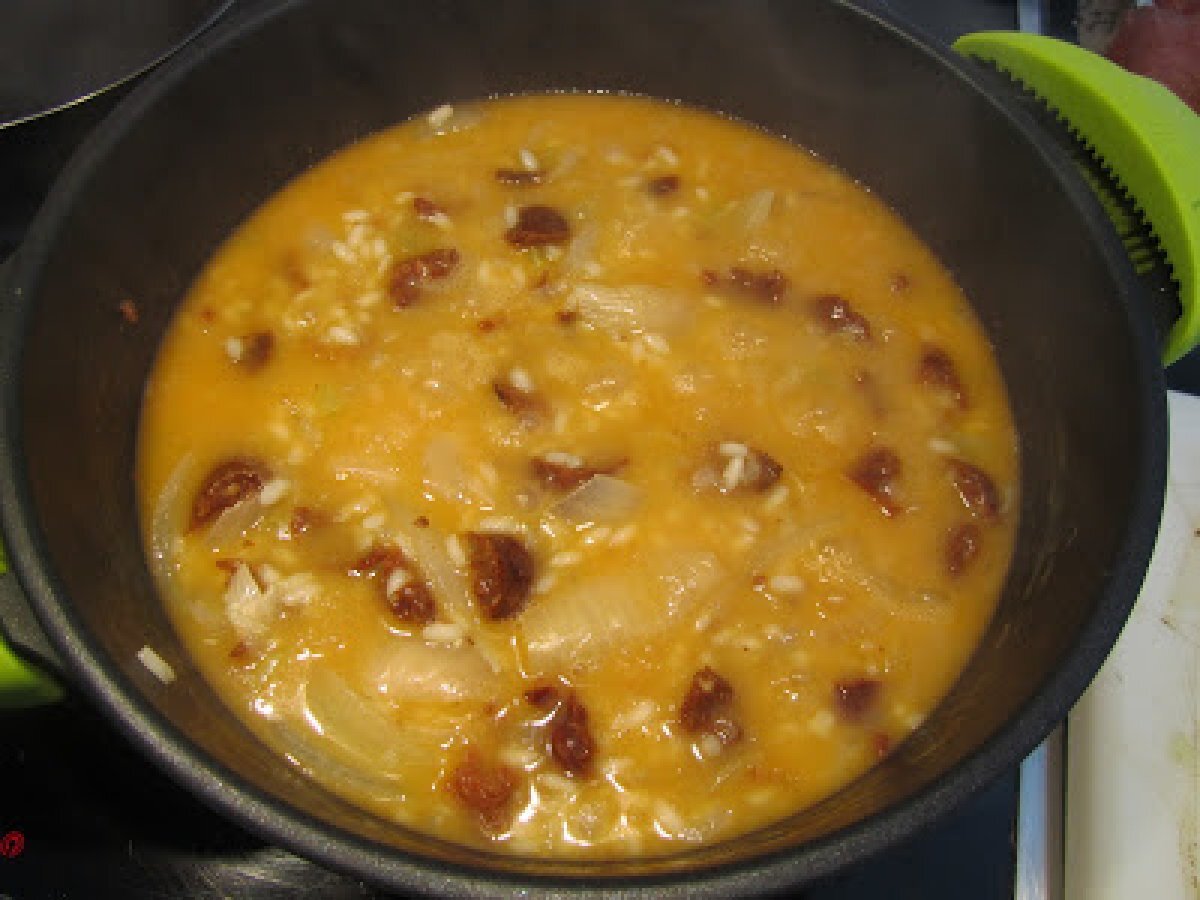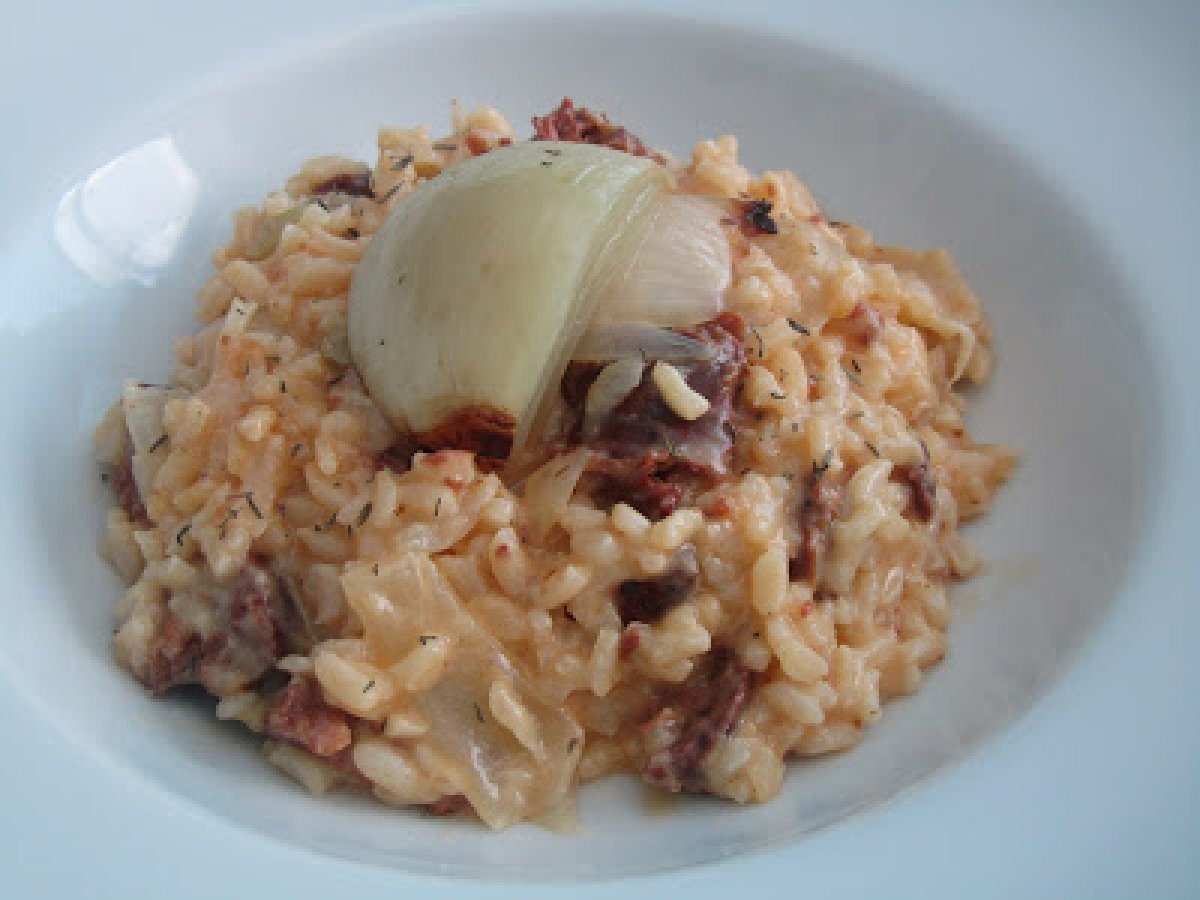 Risotto con chorizo y cebolla