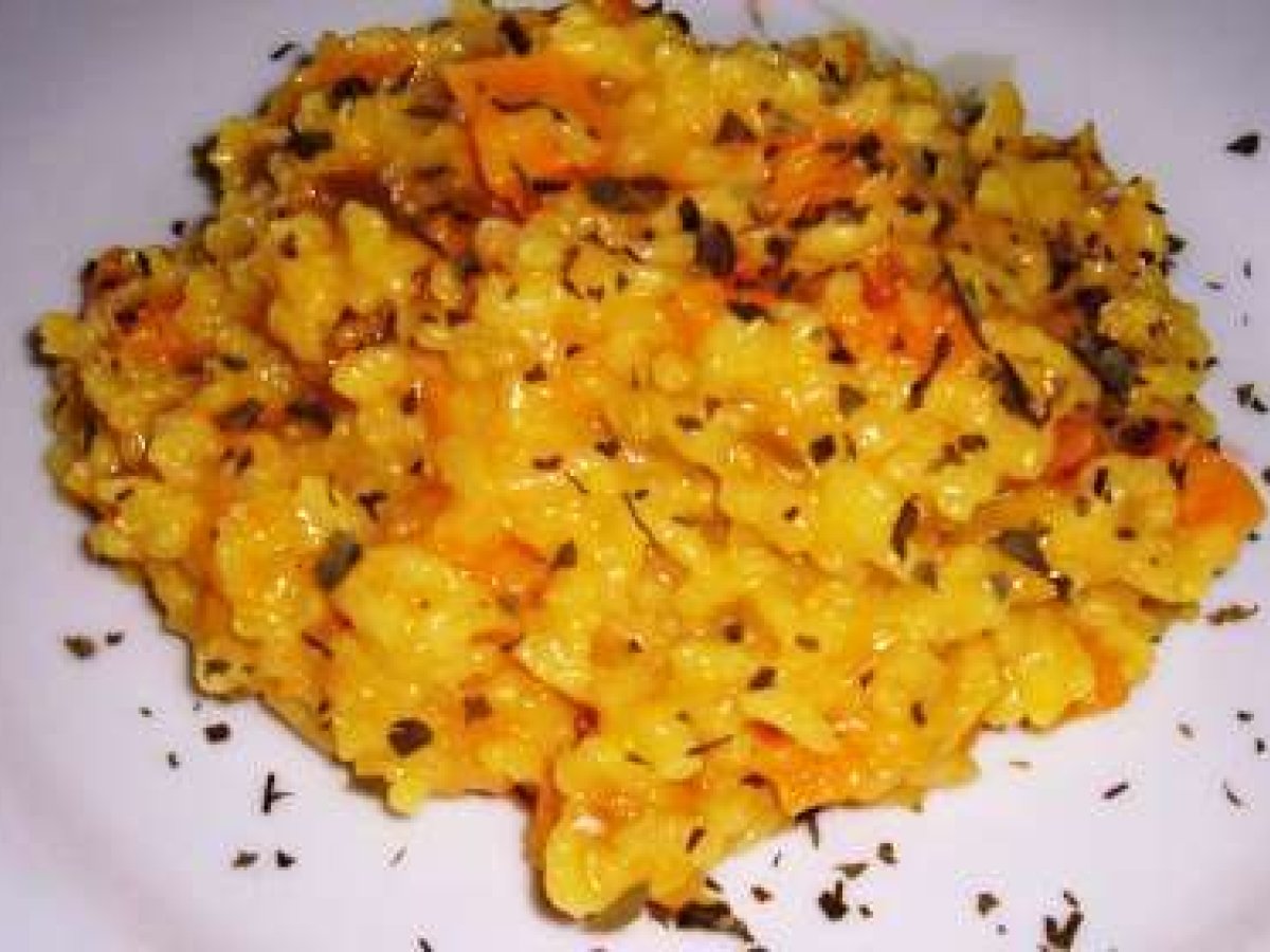 Risotto de calabaza PlatoMedio40 min878 Kcal Enviar esta receta a un amigo Imprimir esta página Preguntar al autor Publicar la foto de esta receta Ingredientes 1 200 gramos de arroz arborio Caldo Vegetal 150 gramos de calabaza Cebolla 30 gramos de Queso parmesano Sal y pimienta Costo estimado: 1.8Euros€ (1.8€/porción)