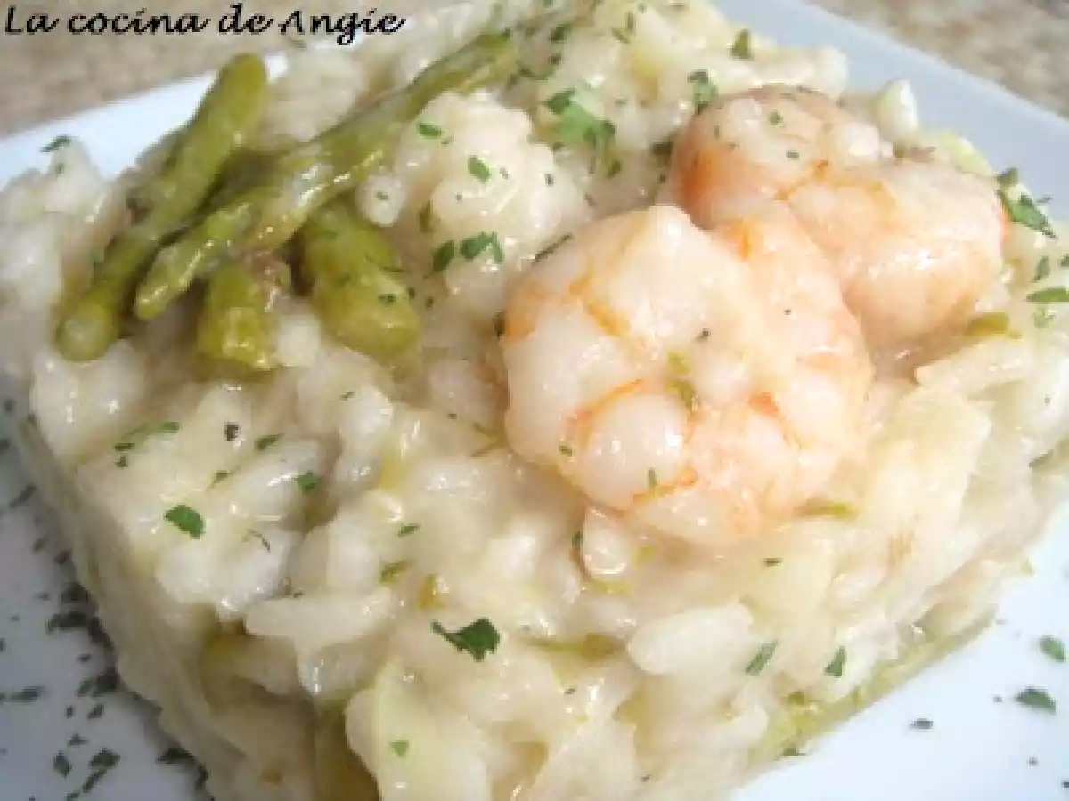 Risotto de gambas y espárragos