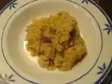 Calienta el risotto en una cacerola a fuego medio/bajo con un poco de agua y un poco de mantequilla (opcional). Mezcla a menudo para que se caliente uniformemente.