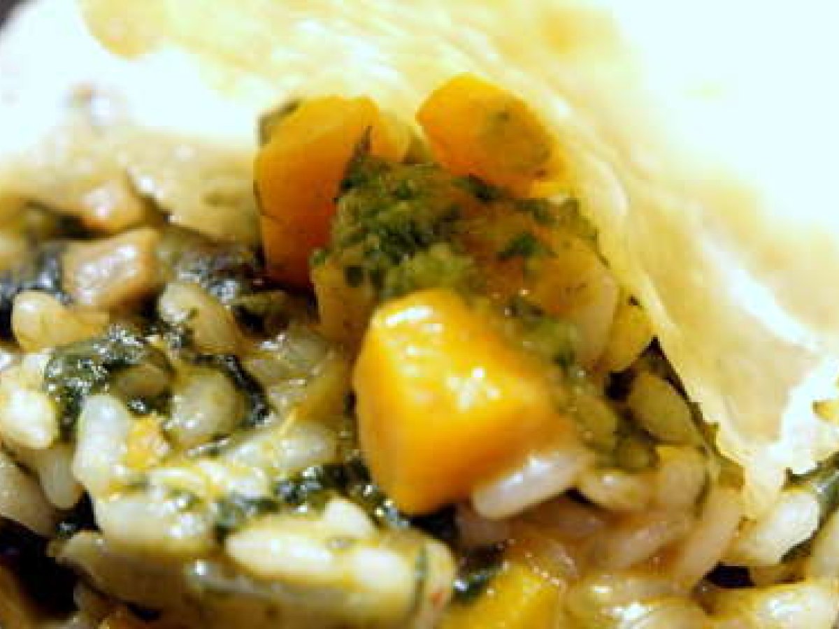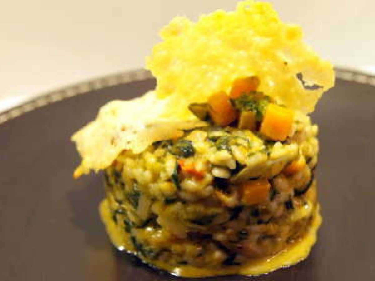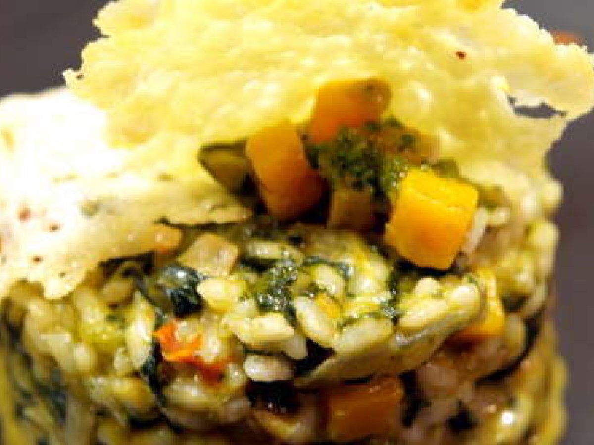 Risotto de verduras con peineta de queso AnteriorSiguiente PlatoMedio55 min Enviar esta receta a un amigo Imprimir esta página Preguntar al autor Publicar la foto de esta receta Ingredientes 2 Ingredientes para dos personas 200 gramos de espinacas hervidas y bien escurridas 15o gramos de calabaza (tipo violín) 1 puerro 1 cebolleta 1 pimiento verde 3 cucharadas de nata sal, aceite, y dos ajos 3 tomates maduros de pera 2 tacitas de arroz 1 litro de caldo vegetal queso para rallar