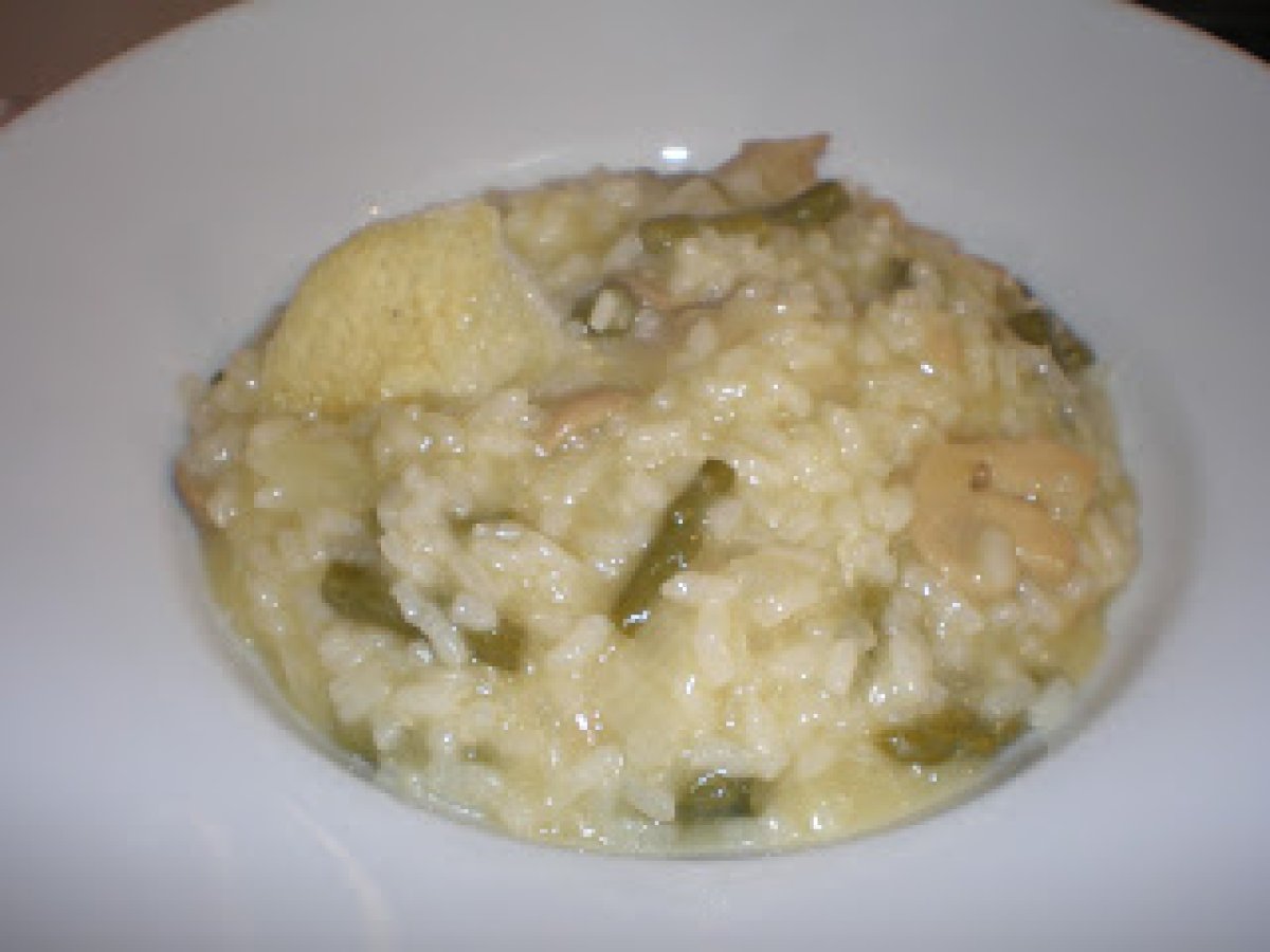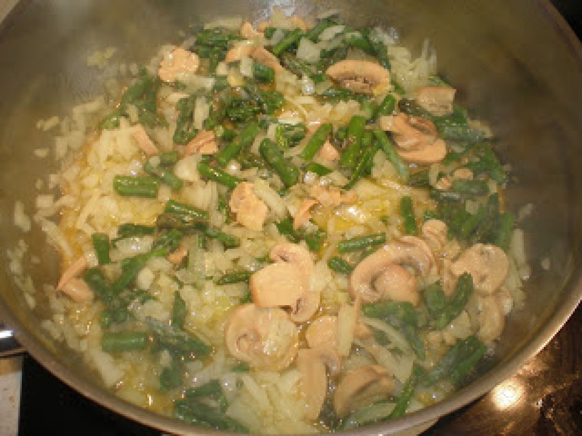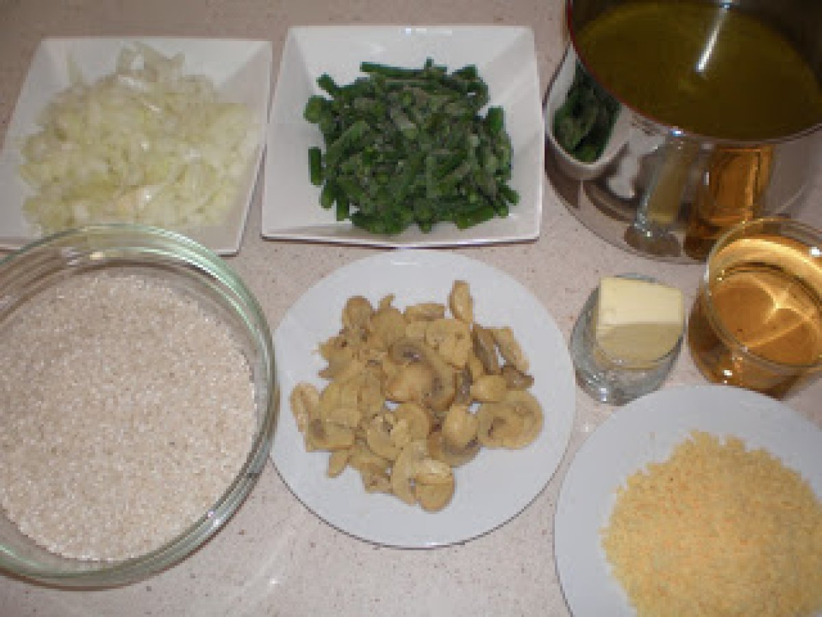 Rissotto de espárragos y champiñones AnteriorSiguiente PlatoFácil35 min685 Kcal Enviar esta receta a un amigo Imprimir esta página Preguntar al autor Publicar la foto de esta receta Ingredientes 4 400 g arroz 150 g espárragos trigueros 150 g champiñones laminados 1 cebolla 1 vaso de vino blanco 1 l.caldo de pollo 60 g mantequilla 150 g de queso (parmesano o manchego curado), aceite sal.