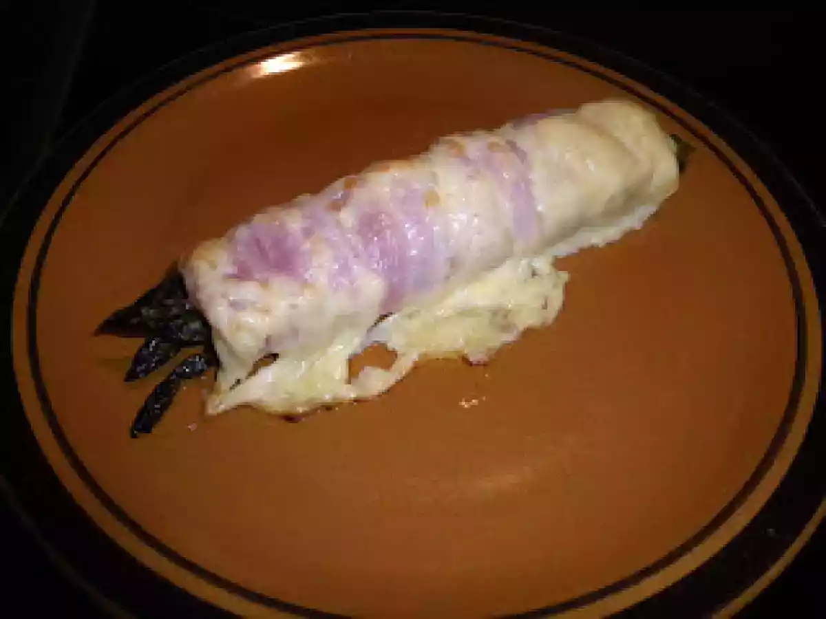 Rollitos de espárragos trigueros con bacon y queso. PlatoFácil35 min44 Kcal Enviar esta receta a un amigo Imprimir esta página Preguntar al autor Publicar la foto de esta receta Ingredientes 2 espárragos trigueros bacon en lonchas queso en lonchas sal