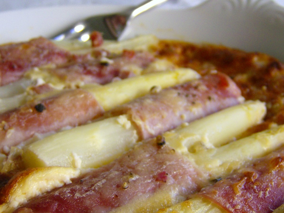 Rollitos de espárragos y jamón vota ahora AnteriorSiguiente PlatoFácil40 min289 Kcal Enviar esta receta a un amigo Imprimir esta página Preguntar al autor Publicar la foto de esta receta Ingredientes 2 12 espárragos blancos o verdes 6 rebanadas de jamón cocido 2 dl de leche 2 huevos 1/2 cucharadita de sal 2 cucharadas grandes de queso grana padano rallado Costo estimado: 6.95Euros€ (3.48€/porción)