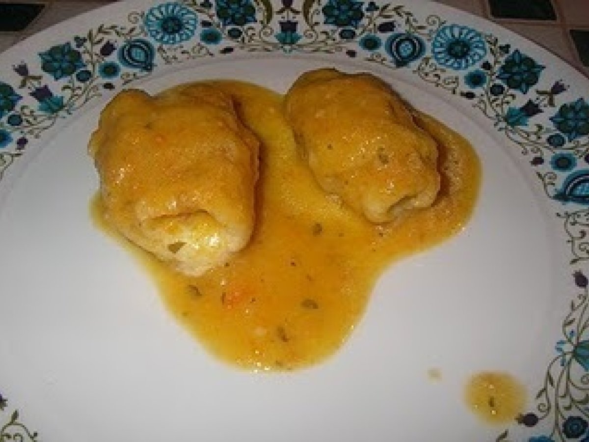 Rollitos de pollo en salsa PlatoMedio1 h 5 m Enviar esta receta a un amigo Imprimir esta página Preguntar al autor Publicar la foto de esta receta Ingredientes 4 Pechugas de pollo,Queso semicurado,1 cebolla, 1 zanahoria,3 dientes de ajo, Harina, Sal, Aceite de oliva, Cerveza, Agua