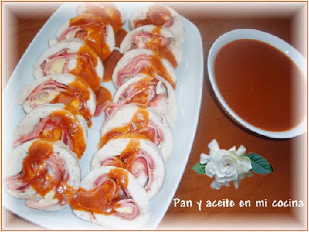 Rollo de pollo con salsa agridulce