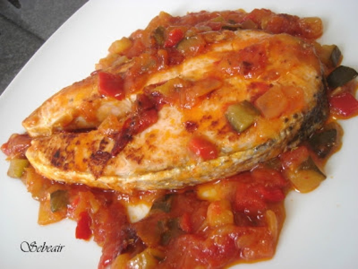 Salmon con fritada o pisto (tradicional) + regalo ines rosales PlatoFácil50 min Enviar esta receta a un amigo Imprimir esta página Preguntar al autor Publicar la foto de esta receta Ingredientes 2 2 rodajas grandes de salmón fresco 1 bote de pisto o fritada Pimienta blanca Sal 1-2 cucharadas de aceite de oliva