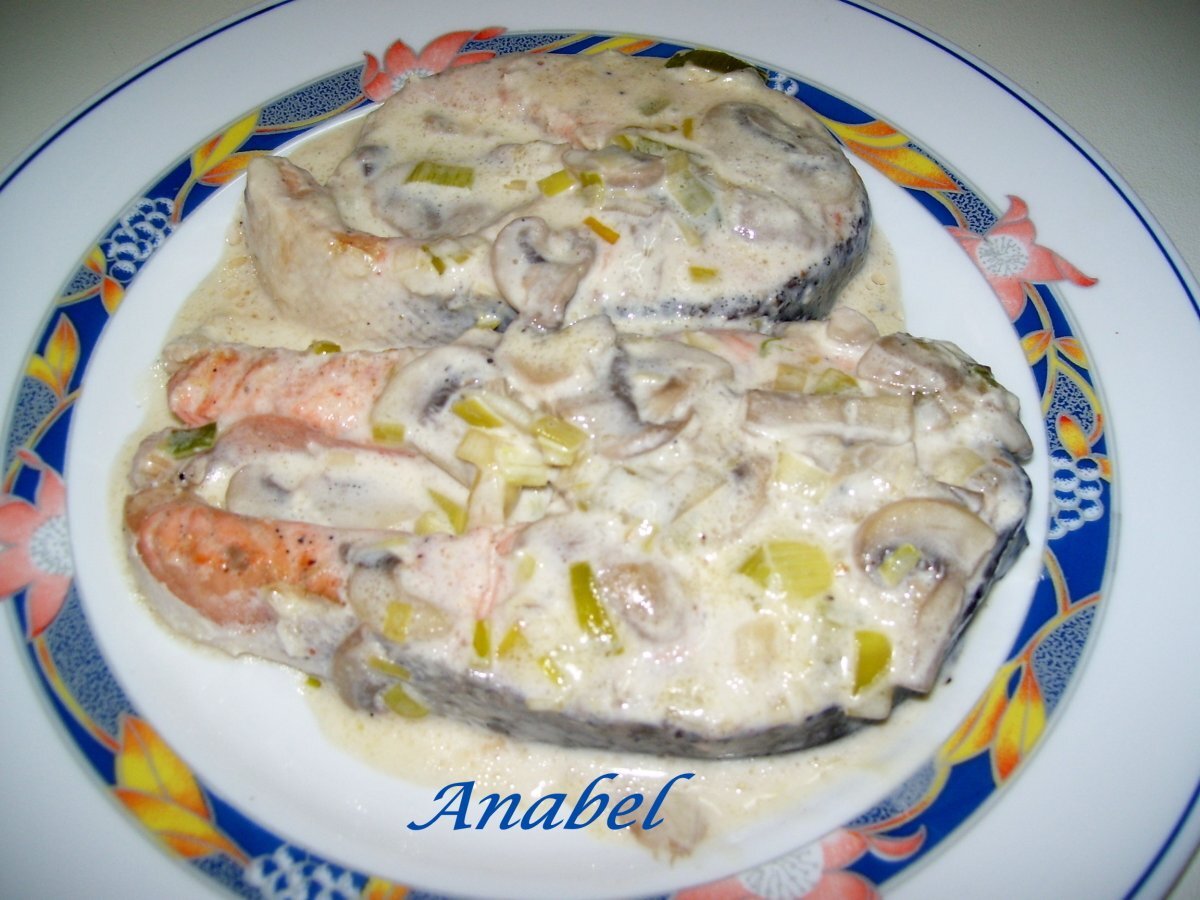 Salmón cremoso con champiñones PlatoFácil25 min1700 Kcal Enviar esta receta a un amigo Imprimir esta página Preguntar al autor Publicar la foto de esta receta Ingredientes 1 6 rodajas de salmón 3 puerros 400 ml de nata 250 g de champiñones brandy 100 ml de caldo de pescado sal y pimienta aceite de oliva Costo estimado: 17.92Euros€ (17.92€/porción)