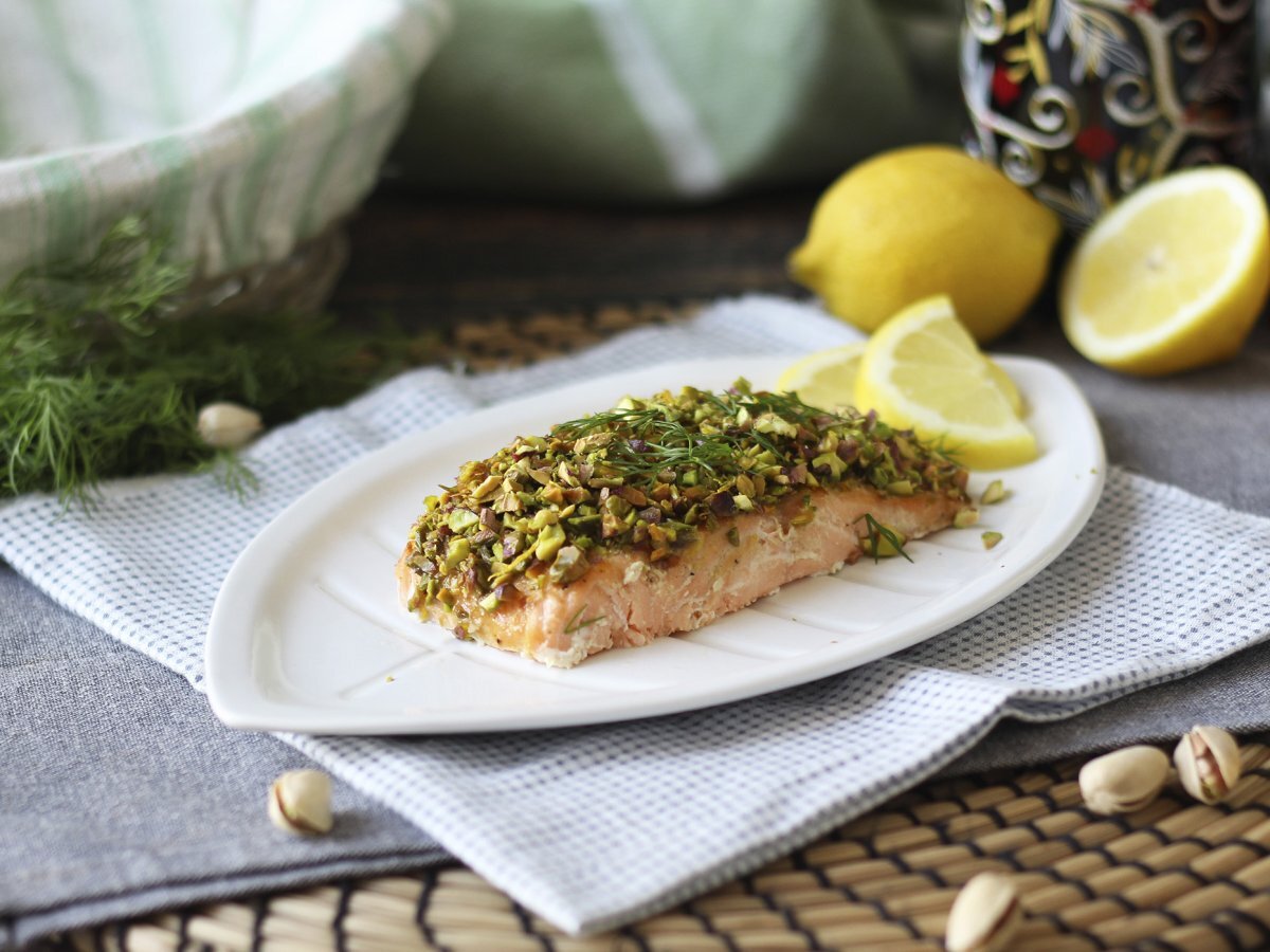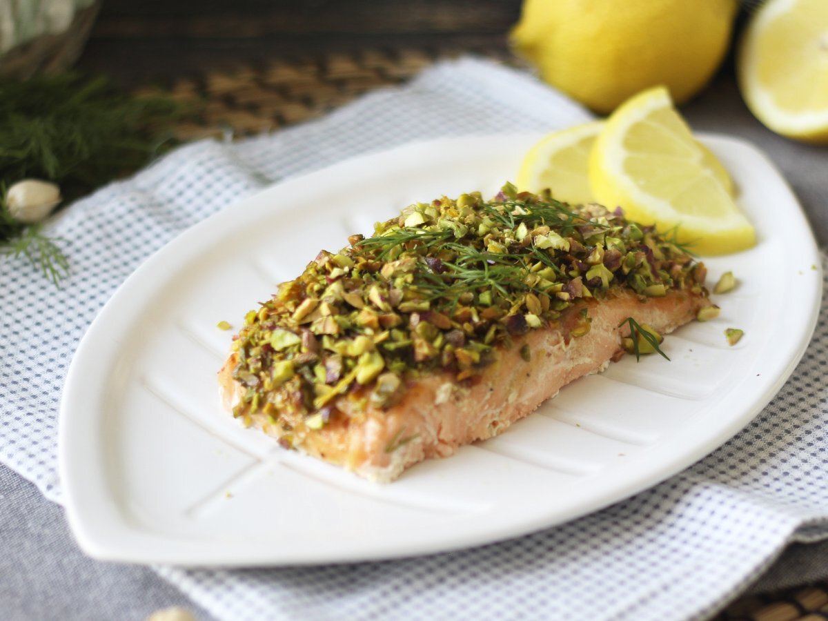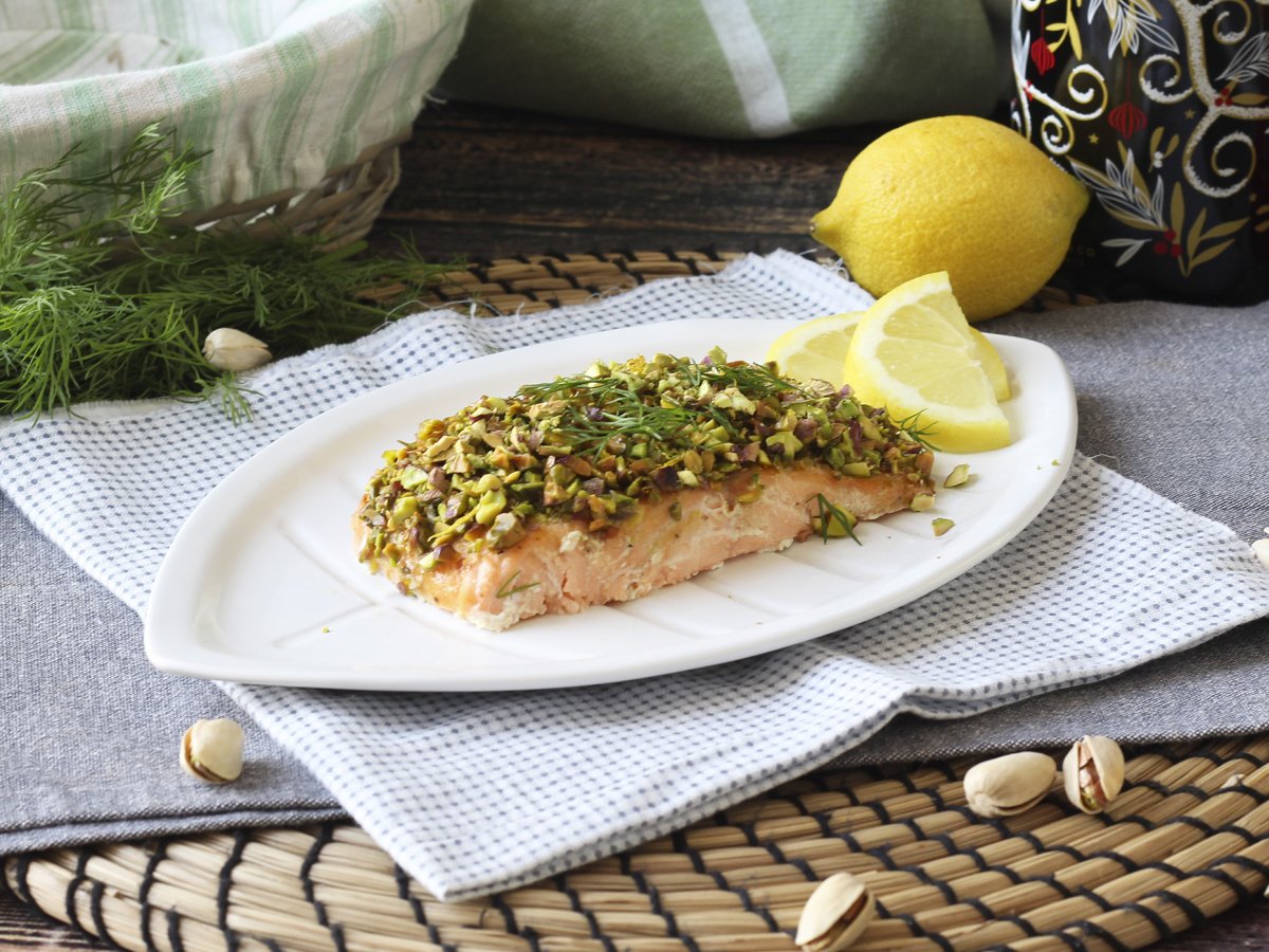 Hay platos que encajan igual de bien en una cena especial que en una comida entre semana. El salmón en costra de pistachos es uno de ellos. Une lo saludable con el placer de comer algo sabroso y bien presentado, sin complicaciones innecesarias. Vistosa y baja en calorías, esta receta es original, diferente y siempre queda bien sin apenas esfuerzo. En esta propuesta, el lomo de salmón va acompañado de eneldo, pistachos y un toque de miel, mostaza y limón que potencia su sabor natural. Al cocinarse al horno, el resultado es jugoso, delicado y lleno de equilibrio. La suavidad del pescado se equilibra con la textura de los pistachos, creando un plato lleno de matices. Y lo mejor es que no hace falta técnica ni práctica para prepararlo en menos de media hora. Solo ganas de comer bien y disfrutar desde el primer bocado.
