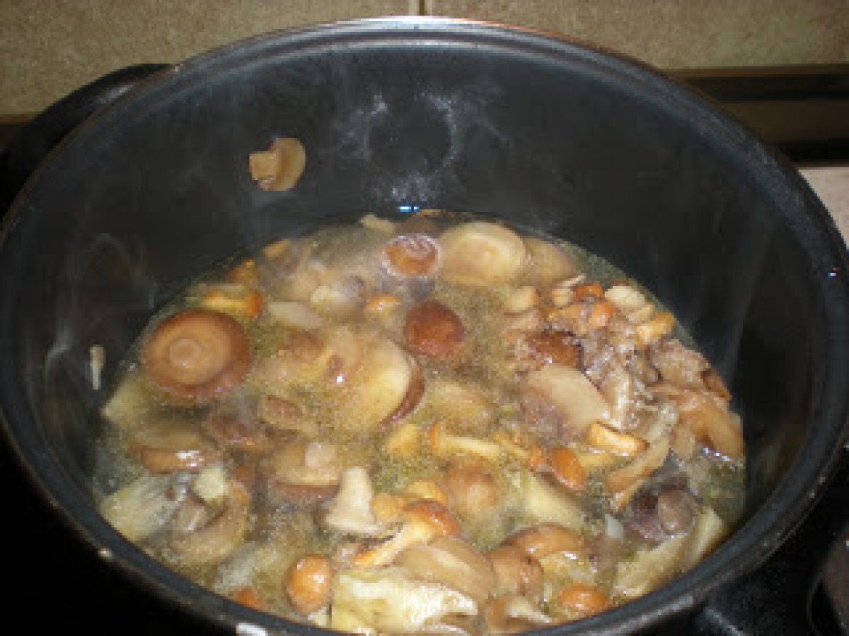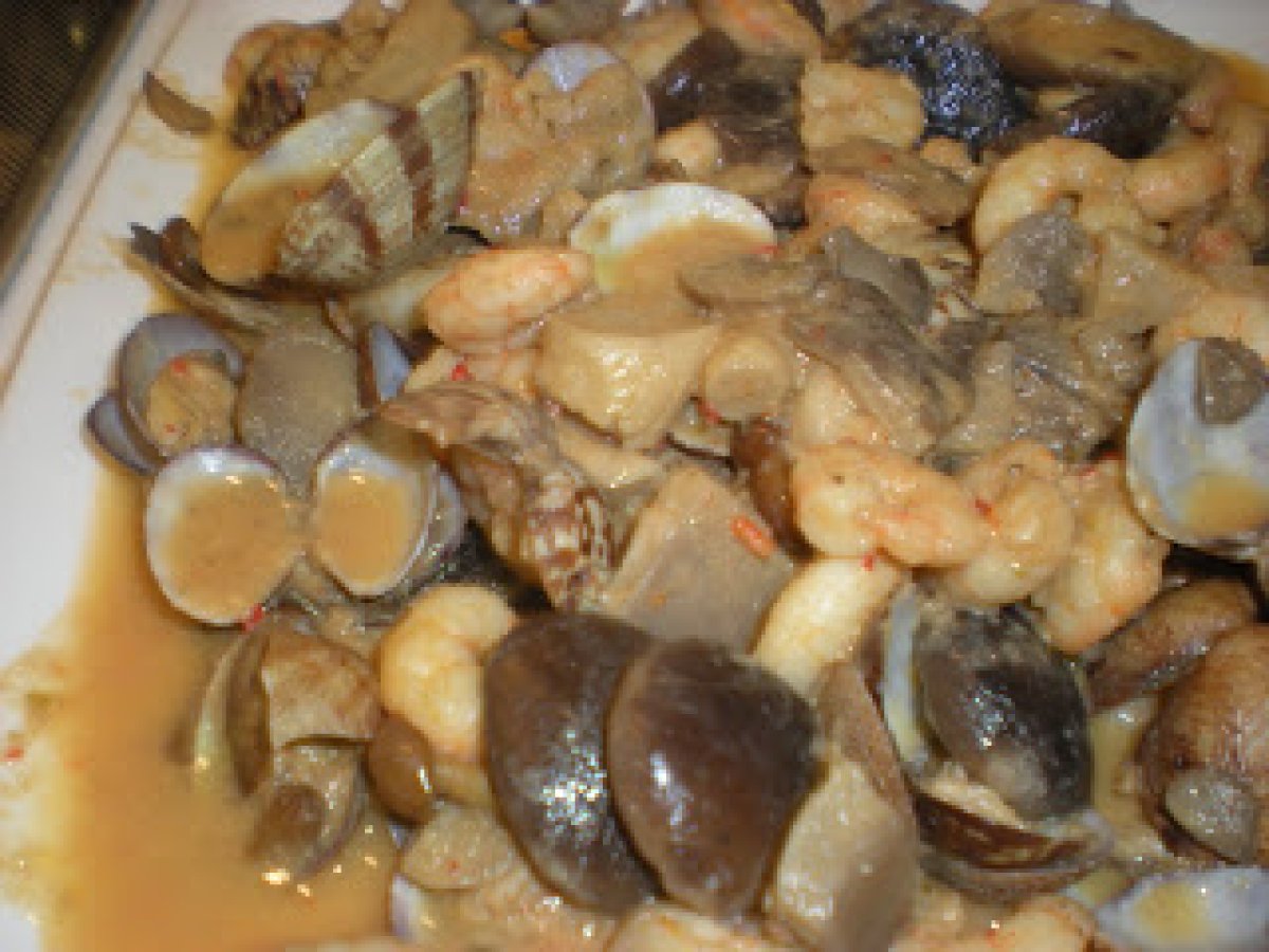 Salteado de setas con almejas y gambas AnteriorSiguiente PlatoFácil20 min394 Kcal Enviar esta receta a un amigo Imprimir esta página Preguntar al autor Publicar la foto de esta receta Uno suculento un llano de seta y de fruto de mar que hay que probar en usted. Ingredientes 4 500 gramos de setas variadas congeladas 500 gramos de almejas 500 gramos de gambas peladas congeladas 3 cucharas de aceite de oliva 1 toque de pimientas variadas 1 cucharadita de pimentón dulce 1 cucharadita de orégano 1 toque de sal al gusto 1 copa de brandy 1 vaso de vino blanco