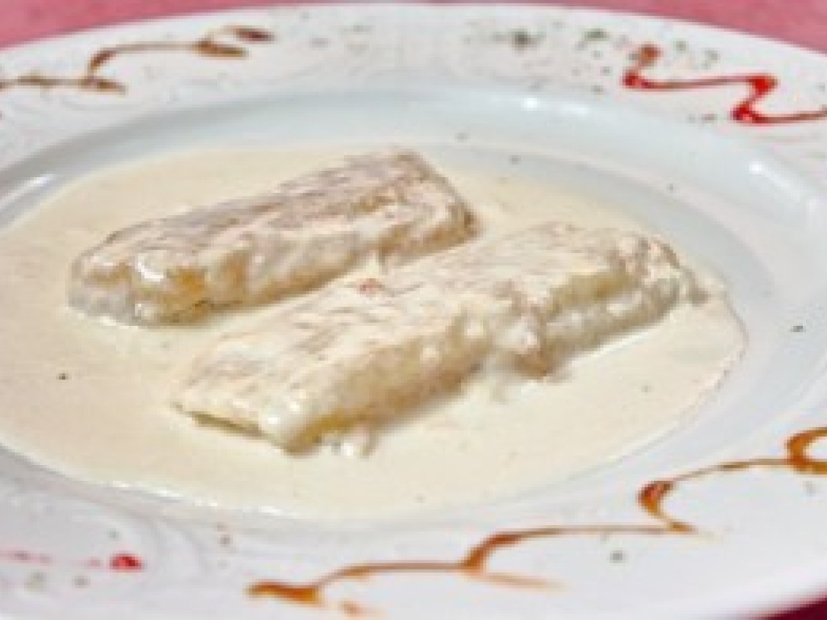 San jacobos de pencas con bechamel PlatoFácil30 min603 Kcal Enviar esta receta a un amigo Imprimir esta página Preguntar al autor Publicar la foto de esta receta Ingredientes 4 1 Kg de acelgas con pencas grandes Un litro y medio de leche 2 cucharadas de Harina 250 g de lonchas de Queso 250 g de Jamón de york 1 sobre de Queso rallado 1 cucharada de Mantequilla Aceite de oliva virgen extra Sal Costo estimado: 10.79Euros€ (2.7€/porción)