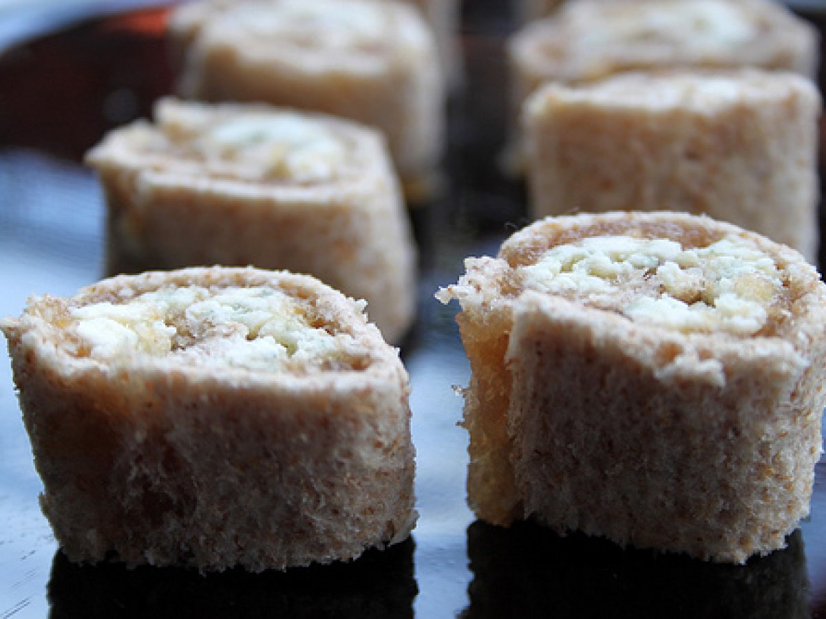 Sandwich enrollado de membrillo y queso azul. paso a paso.