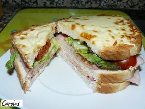 Sándwich gratinado PlatoMedio50 min Enviar esta receta a un amigo Imprimir esta página Preguntar al autor Publicar la foto de esta receta Ingredientes 2 Pan de molde Lechuga Tomate Mayonesa Queso manchego curado Jamón york Mozarella para gratinar