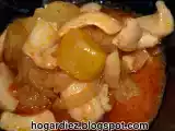 Sepia en salsa de almendras AnteriorSiguiente PlatoFácil50 min Enviar esta receta a un amigo Imprimir esta página Preguntar al autor Publicar la foto de esta receta Ingredientes 1 1 sepia pequeña (la mía, de 650 gr) 1/2 cebolla 2 ajos 1 guindilla cayena Un puñado de almendras 1/2 vaso de vino blanco Caldo de pescado o media pastilla de concentrado 1 rebanada de pan 1 patata Perejil Agua, aceite y sal