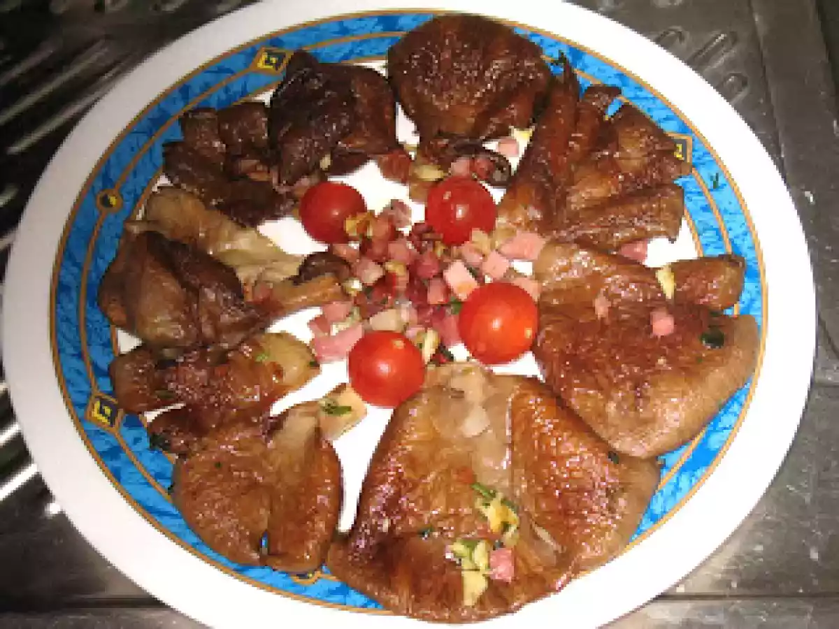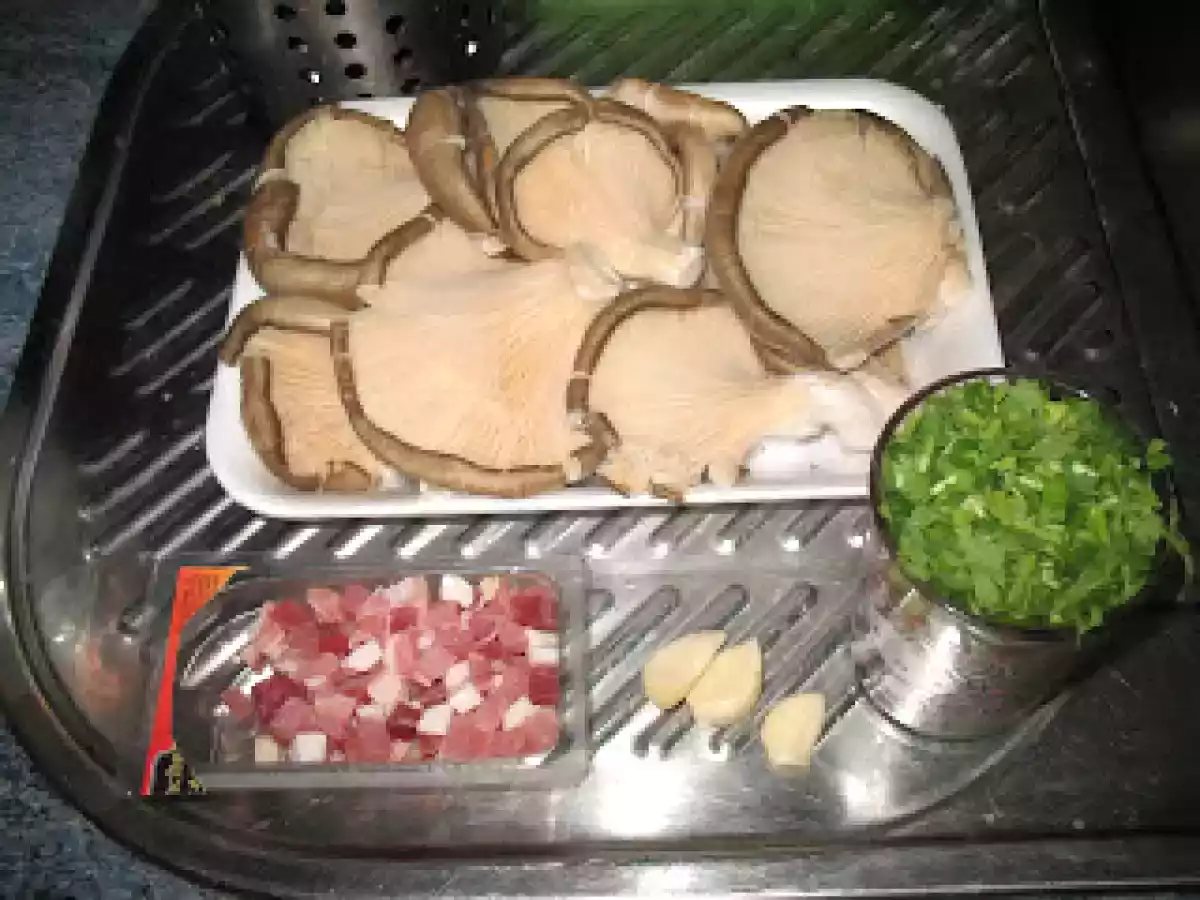 Setas con taquitos de jamón serrano vota ahora AnteriorSiguiente PlatoFácil30 min209 Kcal Enviar esta receta a un amigo Imprimir esta página Preguntar al autor Publicar la foto de esta receta Ingredientes 2 Una bandeja de setas 3 dientes de ajo 100 g de taquitos de jamón serrano perejil Sal y aceite de oliva Costo estimado: 3.61Euros€ (1.8€/porción)