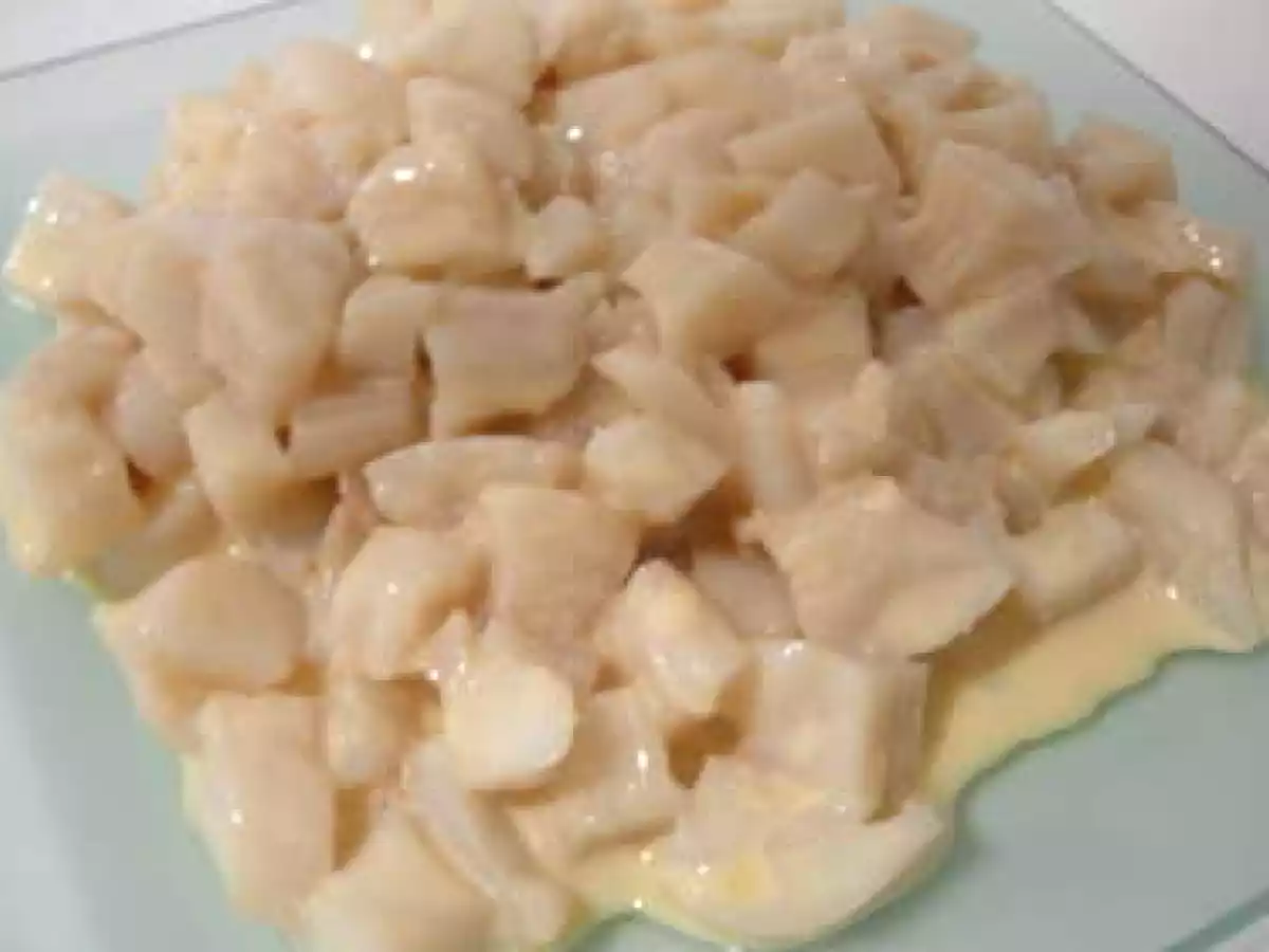 - Bullim la sípia mitja hora, la treiem de l'aigua calenta i la deixem refredar.