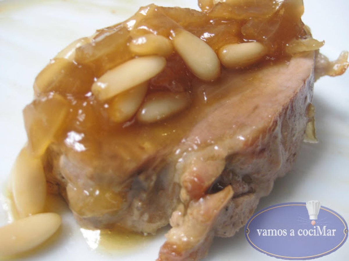 Solomillo con piñones a la miel PlatoFácil50 min Enviar esta receta a un amigo Imprimir esta página Preguntar al autor Publicar la foto de esta receta Ingredientes 1 2 solomillos 1 cebolla 2 dientes de ajo 120 ml vino blanco 120 ml Brandy 100 g miel 75 g piñones aceite de oliva sal