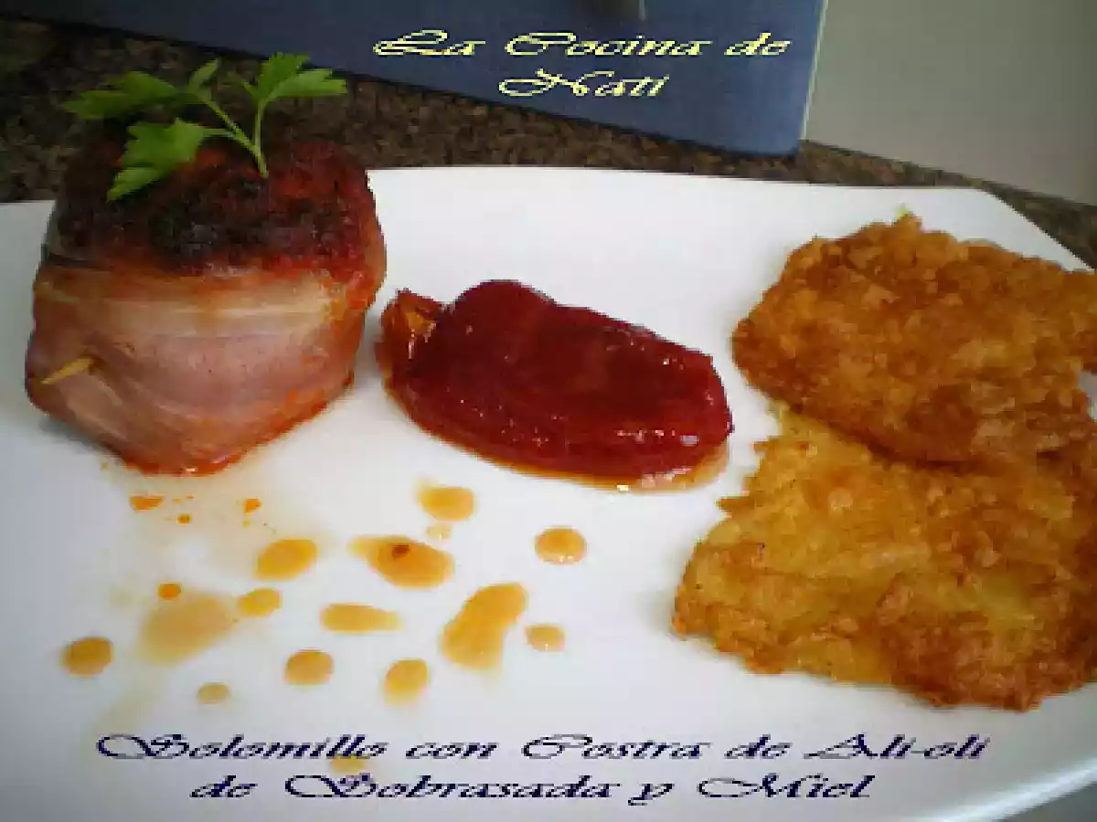 Solomillo de cerdo con costra de alioli de sobrasada y miel.