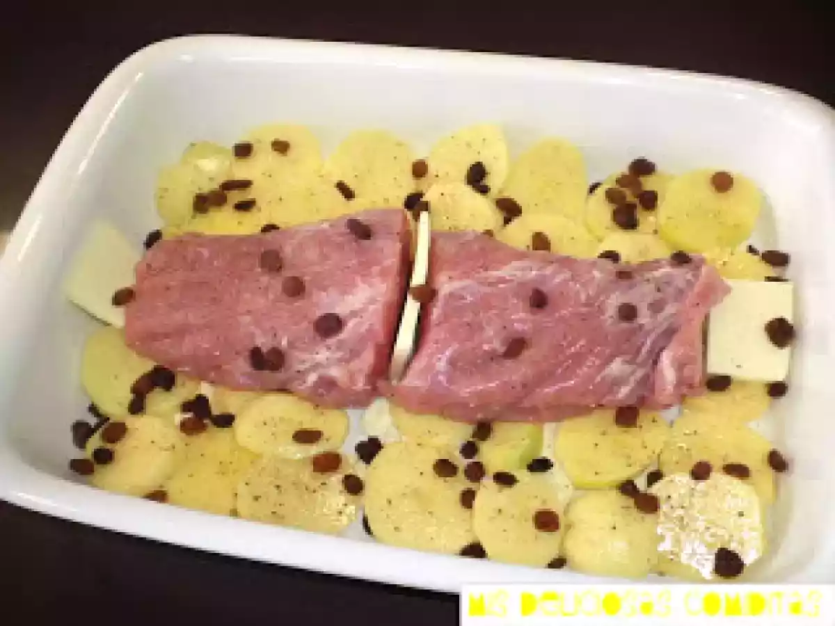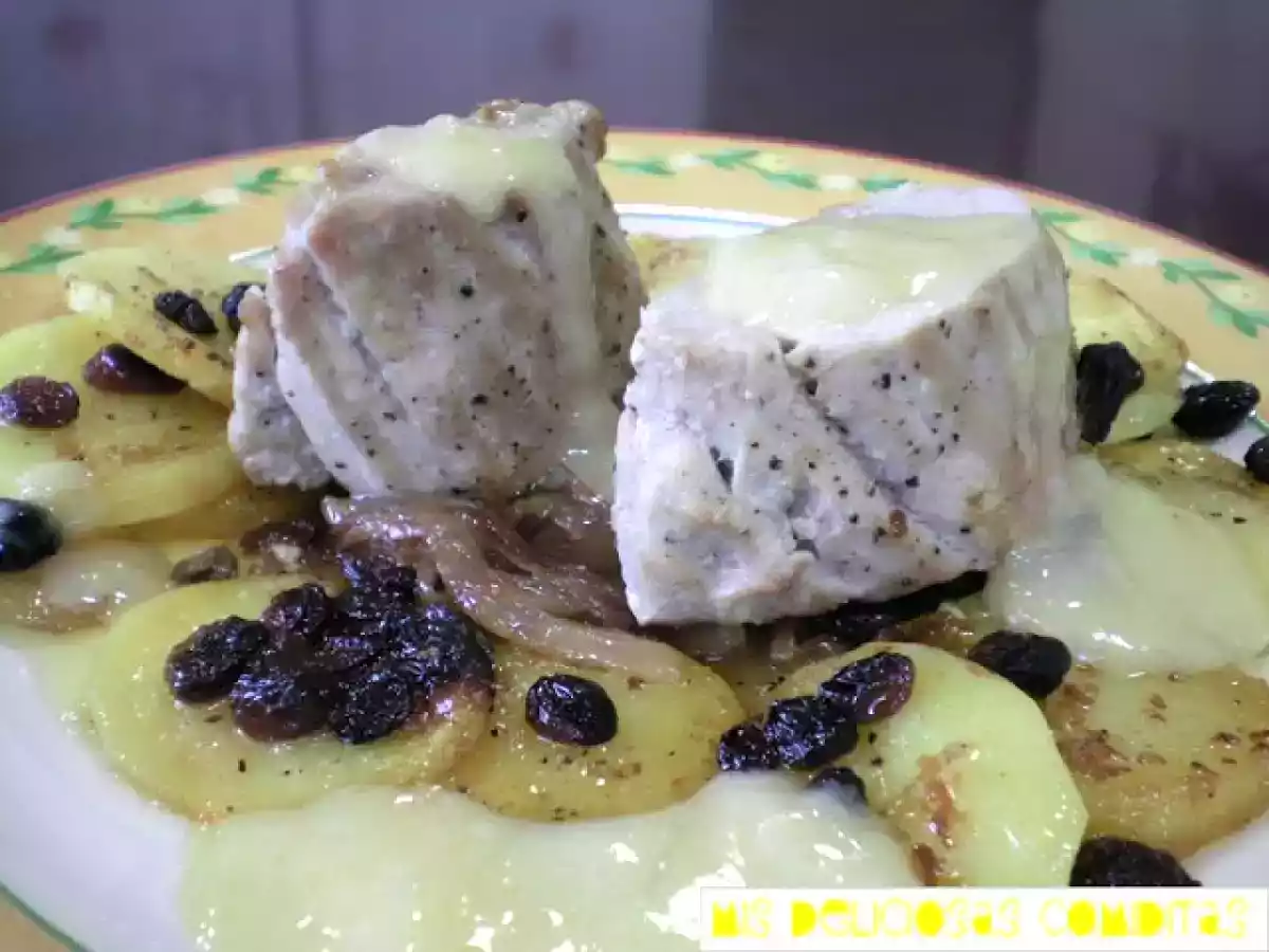 Solomillo de cerdo con salsa de mostaza y cebolla caramelizada AnteriorSiguiente PlatoFácil30 min880 Kcal Enviar esta receta a un amigo Imprimir esta página Preguntar al autor Publicar la foto de esta receta Ingredientes 1 Un solomillo de cerdo. 2 patatas. 1 cebolla. Sal. Pimienta. Uvas pasas. Azucar glass. Aceite de oliva. Vinagre de Módena. Oporto. Mantequilla. Maizena. Mostaza a la antigua. Costo estimado: 3.81Euros€ (3.81€/porción)