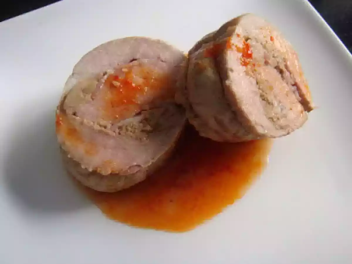 Solomillo de cerdo relleno al pedro ximenez AnteriorSiguiente PlatoFácil40 min Enviar esta receta a un amigo Imprimir esta página Preguntar al autor Publicar la foto de esta receta Una receta muy sabrosa para el almuerzo. Ingredientes 2 2 Solomillos de Cerdo 1 lata de Foie gras de Pato 150 g de Bacon 2 Cebollas 2 dientes de Ajo 1 Pimiento Verde 1 vaso de Pedro Ximenez ½ vaso de Fino 1 cucharadita de Harina 300 g de Champiñones 50 g de Pasas Sultanas Aceite de Oliva Sal Pimienta Negra