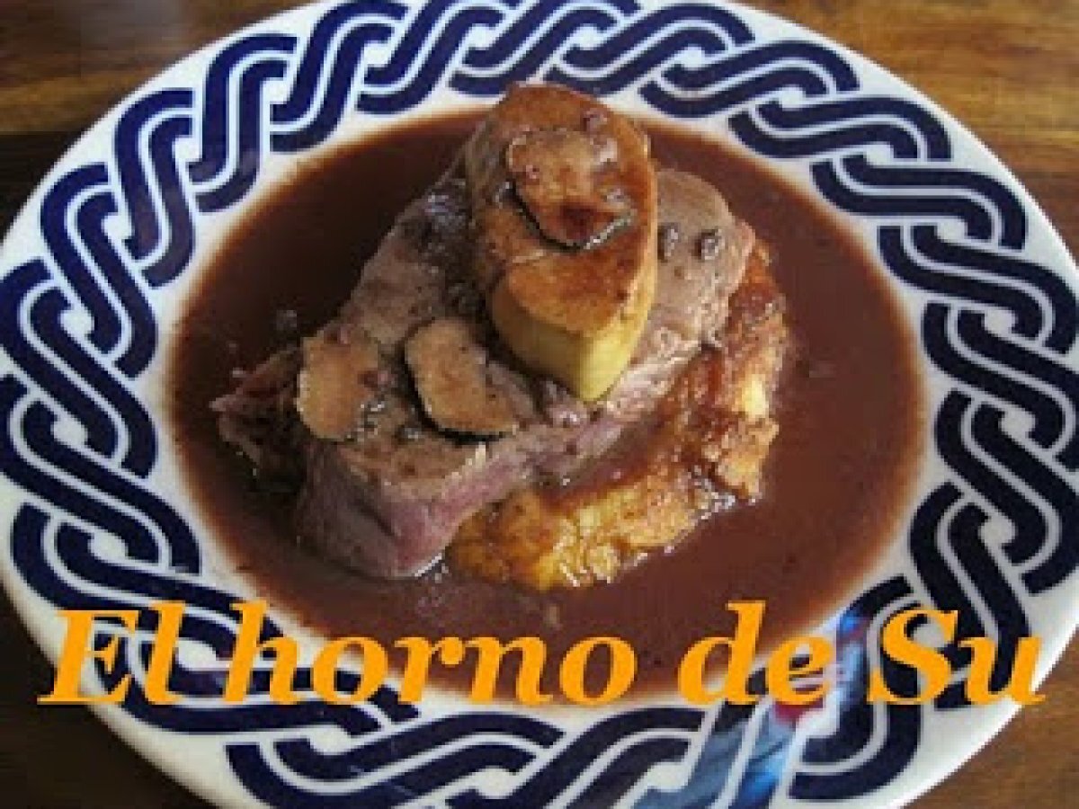 Solomillos rossini en salsa bordelesa vota ahora PlatoFácil35 min Enviar esta receta a un amigo Imprimir esta página Preguntar al autor Publicar la foto de esta receta Ingredientes 1 1 filete de solomillo por persona 1 filete de foie por persona media trufa negra laminada 1 chalota pequeña 275 ml de vino tinto 2-3 huesos de caña mantequilla vino de madeira unos 100 ml de salsa media glasa 100 gr de patata por comensal media cebolla perejil aceite para freír 2 tostadas pequeñas