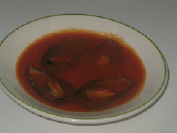 Sopa de tomate y mejillones vota ahora PlatoFácil1 h 10 m Enviar esta receta a un amigo Imprimir esta página Preguntar al autor Publicar la foto de esta receta Ingredientes 4 1 kg de mejillones 1 cebolla 2 dientes de ajo 1/2 kg de tomate triturado 1 vaso de vino blanco 2 hojas de laurel unas hebras de azafrán 4 cucharadas de aceite unas rebanadas de pan sal pimienta