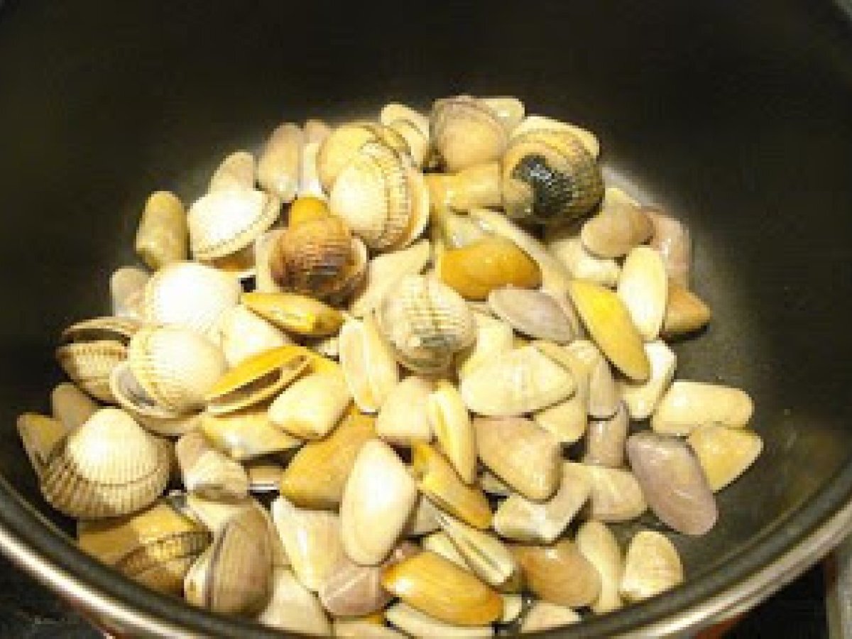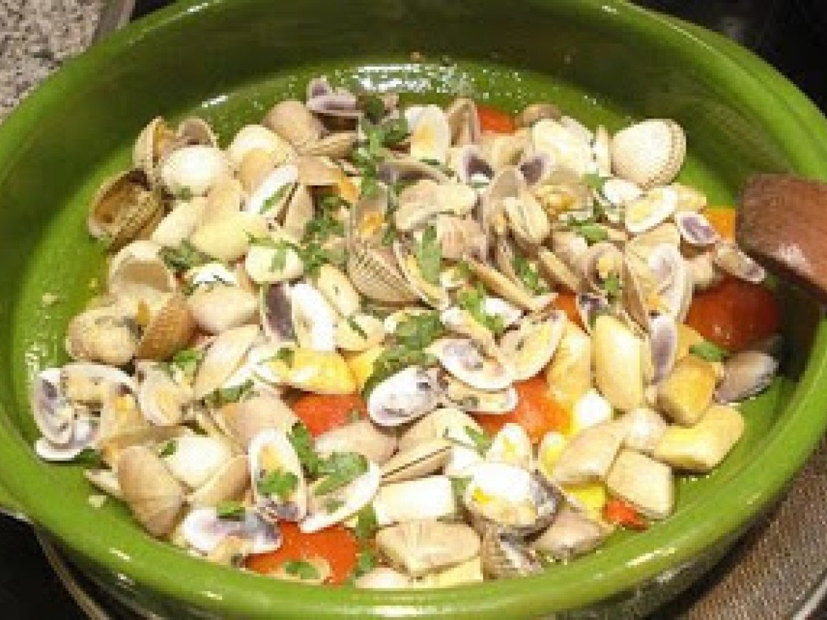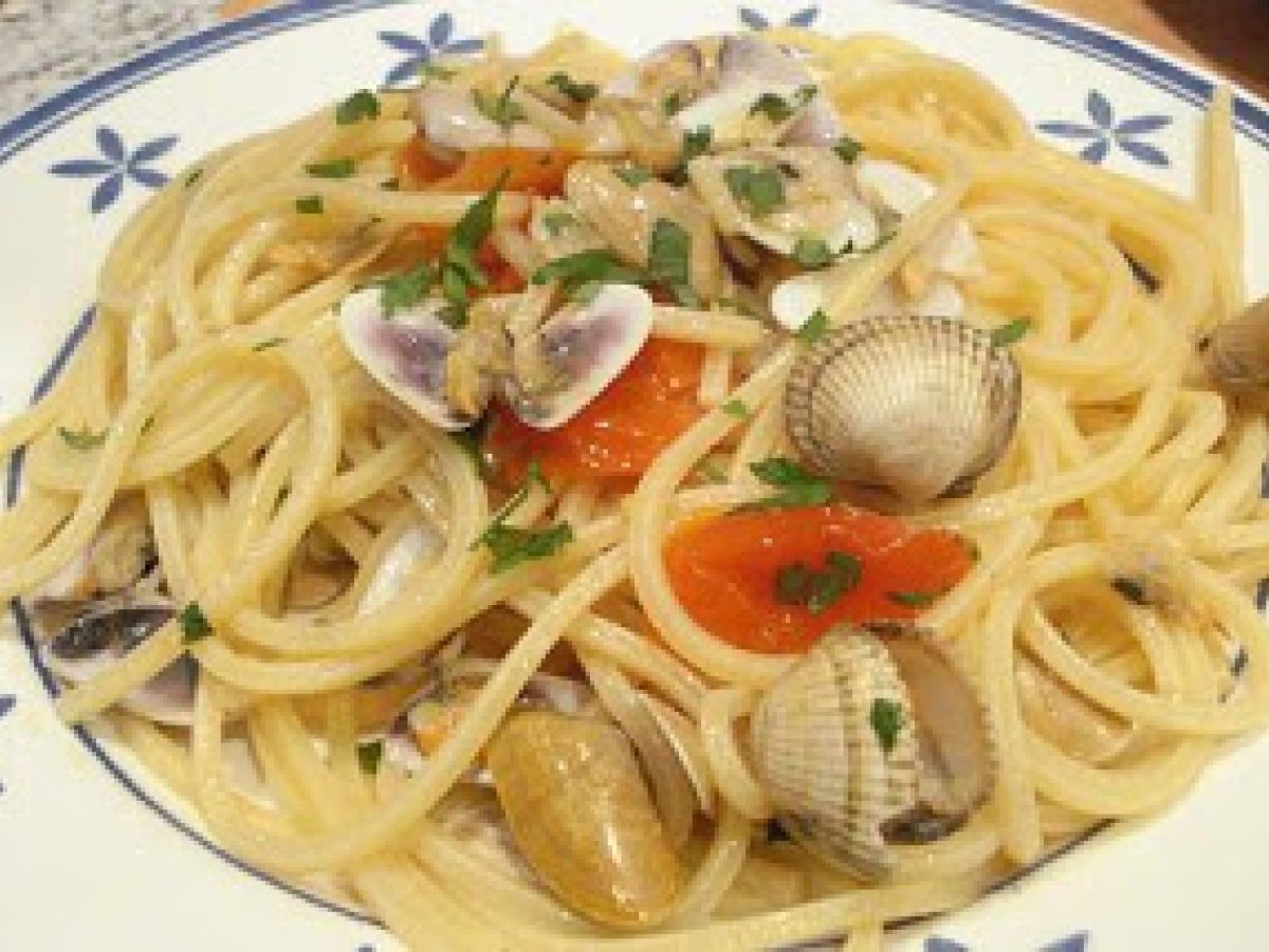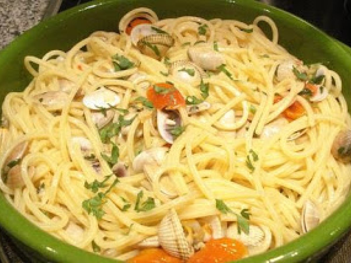 Spaghetti telline e tartufi (espaguetis coquinas y berberechos) AnteriorSiguiente PlatoFácil25 min Enviar esta receta a un amigo Imprimir esta página Preguntar al autor Publicar la foto de esta receta Ingredientes 2 250 g de espaguetis 5 tomates cherry 100 g de coquinas 100 g de berberecho 1 diente de ajo aceite guindilla perejil vino blanco sal.