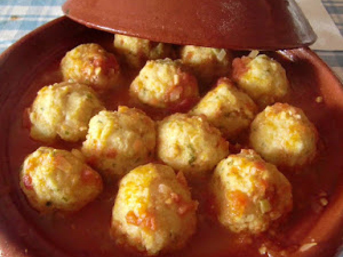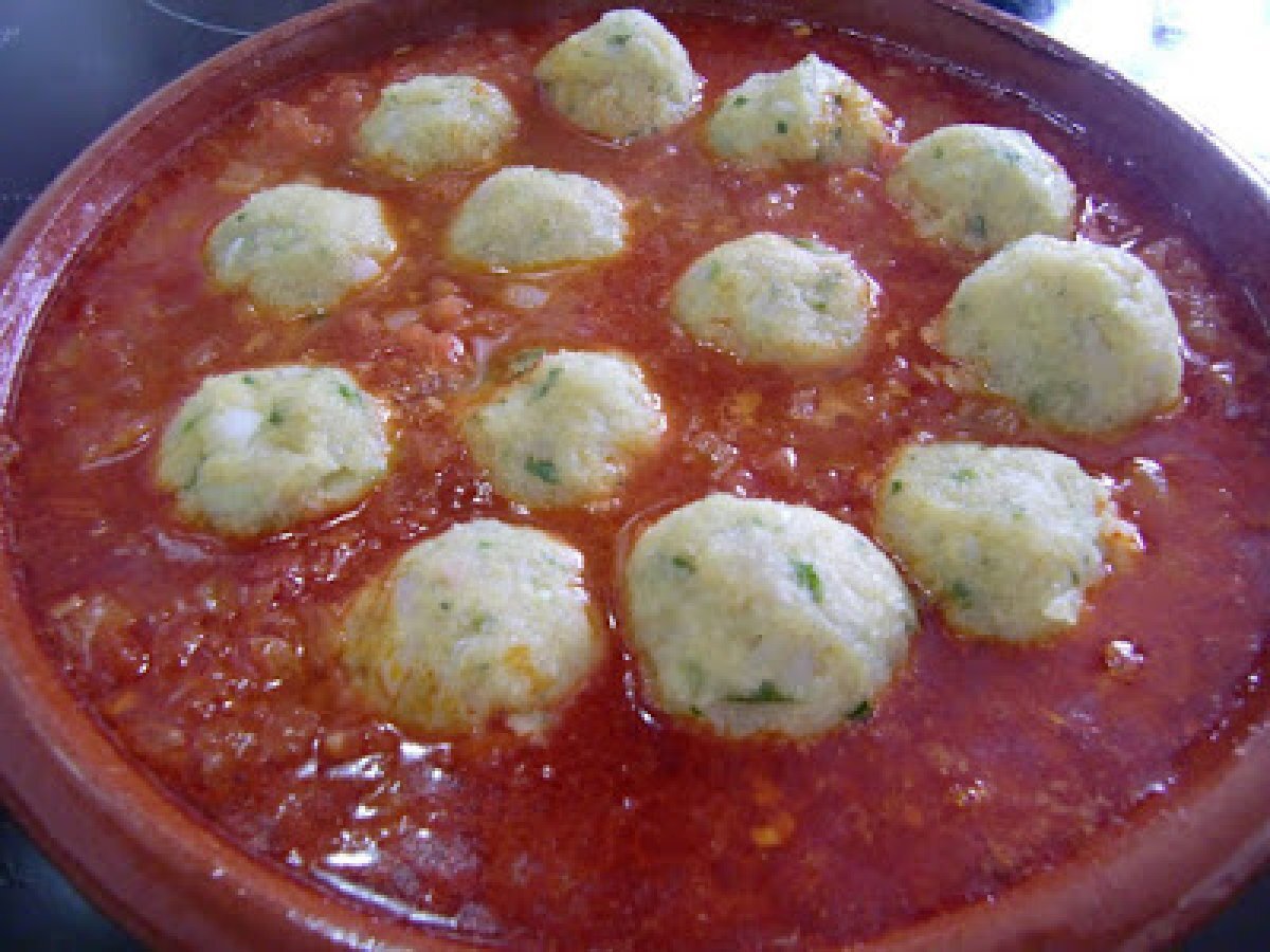 Tajine de albóndigas de pescado blanco AnteriorSiguiente PlatoFácil35 min154 Kcal Enviar esta receta a un amigo Imprimir esta página Preguntar al autor Publicar la foto de esta receta Ingredientes 4 Para las bolitas: 4oo g de pescado limpios. 1 cebolla tierna bien picada 1 cucharada de cilantro fresco y otra de perejil picados finos pizca de cúrcuma un puñado de pan rallado 1 huevo batido 1/2 cucharadita de sal Pimienta negra recién molida Para la salsa: 4 tomates maduros sin piel ni semillas picados 2 cebollas tiernas picadas 1 diente de ajo picado grande 1/2 cucharadita de pimentón 1/4 cucharadita de comino molido 1/4 cucharadita de harissa sal 1/2 cucharadita de azúcar aceite de oliva suave