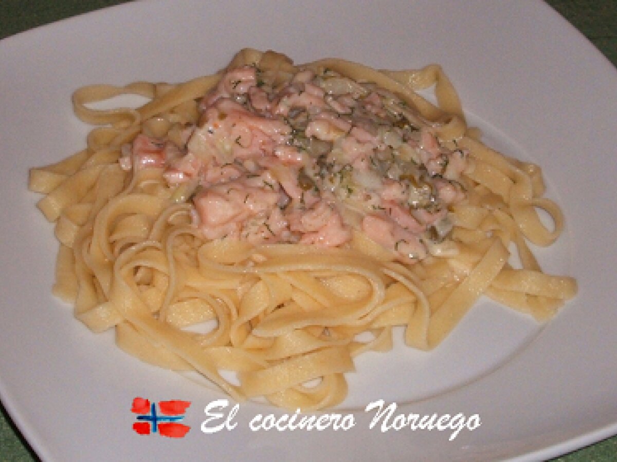 Tallarines con salmón ahumado AnteriorSiguiente PlatoFácil20 min676 Kcal Enviar esta receta a un amigo Imprimir esta página Preguntar al autor Publicar la foto de esta receta Ingredientes 2 Eneldo fresco 1 cebolleta pequeña o media cebolleta grande 15 -20 alcaparras 150 g de salmon Noruego ahumado 200 ml de nata para cocinar 100 ml de leche entera 1 cucharada de parmesano rallado fino sal pimienta negra Costo estimado: 15.68Euros€ (7.84€/porción)