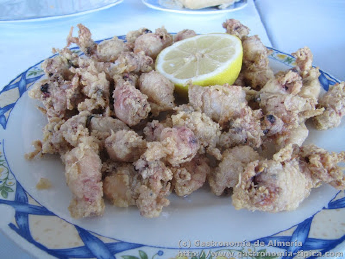 Tapas de almería: chopitos fritos AnteriorSiguiente PlatoFácil40 min Enviar esta receta a un amigo Imprimir esta página Preguntar al autor Publicar la foto de esta receta Ingredientes 4 Los Peces Calamares frescos El Sal El Aceite Una rodaja de limón