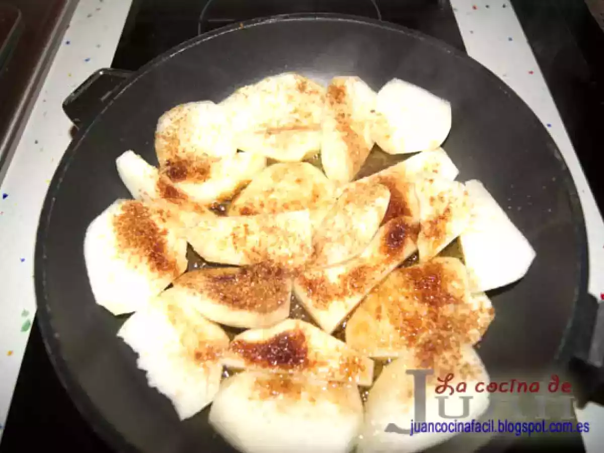 Tarta salada de una mezcla de peras caramelizadas y con un gran queso como es el de Gorgonzola