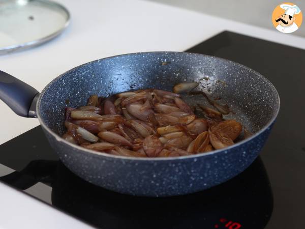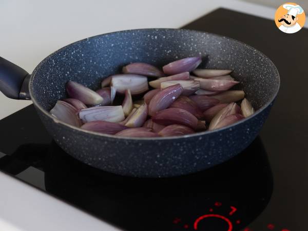 Seguramente ya conoces la clásica receta francesa Tarta Tatin. Pero, ¿y si hoy hacemos una versión salada sustituyendo las manzanas por chalotas caramelizadas? Y eso no es todo, para aumentar el placer añadiremos queso feta Una combinación dulce/salado irresistiblemente deliciosa ¿No te parece? Pues, ¡no te quedes con las ganas de probar esta receta y prepárala en casa que está súper fácil! :-) Sigue las instrucciones paso a paso ↓↓