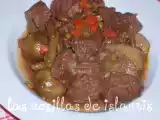 Ternera con tomates deshidratados vota ahora AnteriorSiguiente PlatoFácil40 min593 Kcal Enviar esta receta a un amigo Imprimir esta página Preguntar al autor Publicar la foto de esta receta Ingredientes 3 750 g de carne de guisar de ternera 8 tomates deshidratados Trevijano 8 dientes de ajo 4 cucharadas soperas de salsa de soja 4 cucharadas soperas de Pedro Ximenez 800 ml de agua ( el de hidratar los tomates) Sal Harina Aceite de oliva Costo estimado: 14.4Euros€ (4.8€/porción)