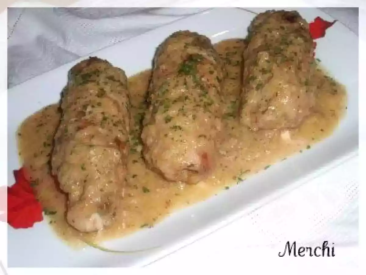 Ternera rellena en salsa de puerro y mostaza