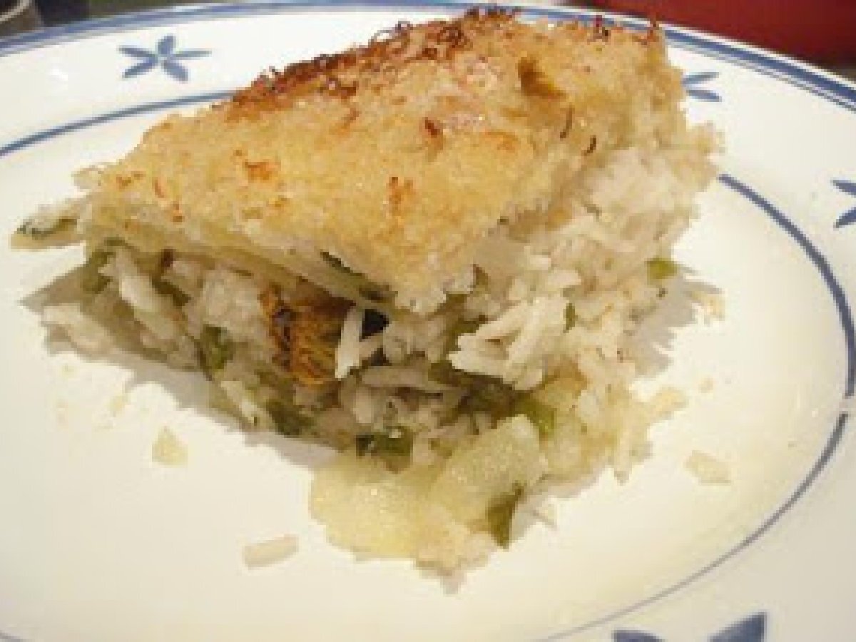 Pastel de patatas y mejillones naturales vota ahora AnteriorSiguiente PlatoMedio55 min Enviar esta receta a un amigo Imprimir esta página Preguntar al autor Publicar la foto de esta receta Ingredientes 4 3 patatas, 1 lata de mejillones al natural, 100 gr. de espárragos trigueros, 120 gr. de arroz largo, 1/2 cebolla, 1 diente de ajo, parmesano rallado, pan rallado, caldo de pescado, aceite, sal, albahaca y perejil.