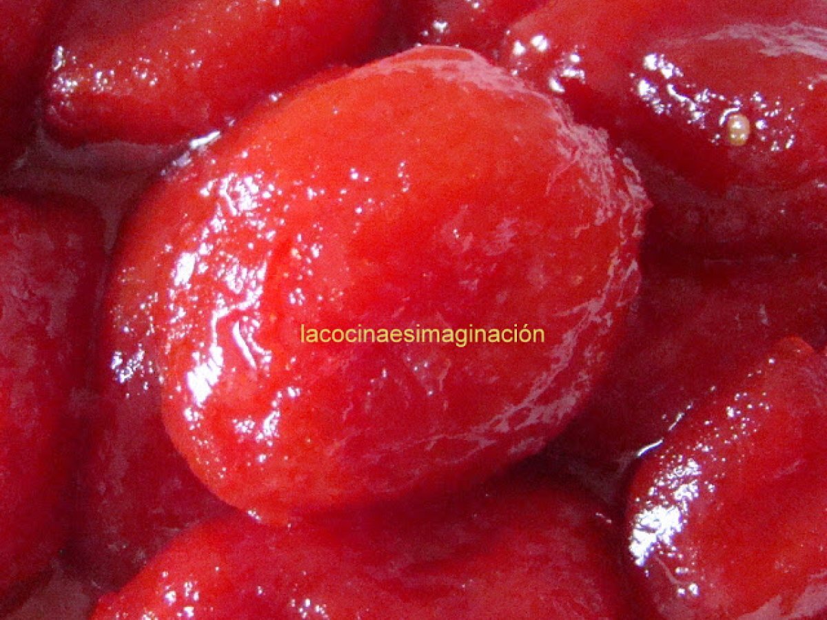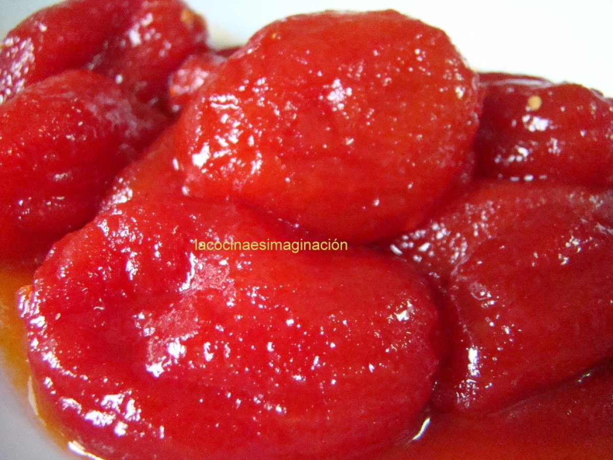 Tomates pera caramelizados (tomates piové) AnteriorSiguiente PlatoFácil35 min Enviar esta receta a un amigo Imprimir esta página Preguntar al autor Publicar la foto de esta receta Ingredientes 1 1 bote de tomate pera de 1 kg 300 g de azúcar 100 ml de aceite de oliva 100 ml de vinagre de manzana sal 1 guindilla