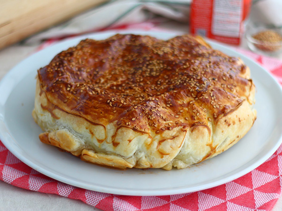 Pintar con yema batida y espolvorear algunas semillas de sésamo.