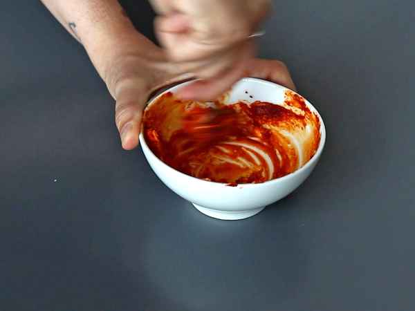 En un bol pequeño, mezcla la mantequilla con la pasta de gochujang.