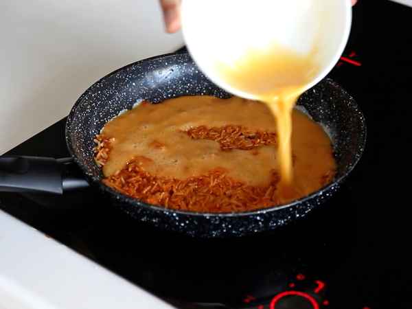 ¿Cómo conseguir la base de arroz crujiente para esta tortilla?