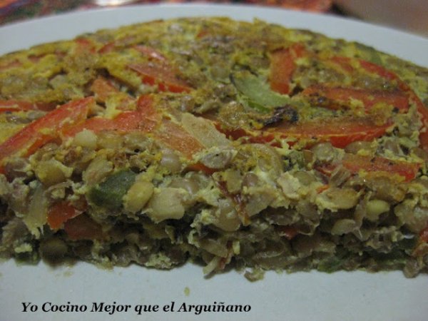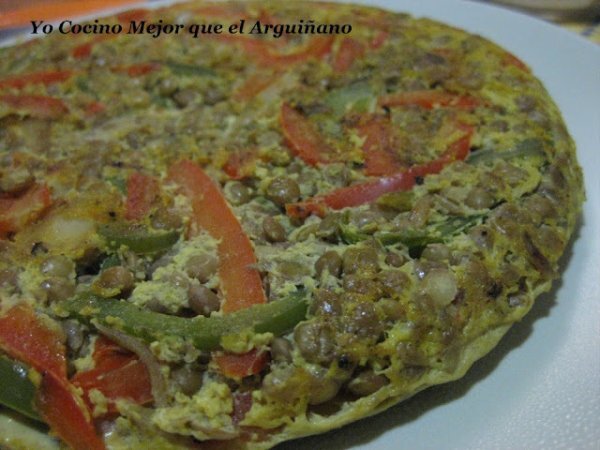 Tortilla de lentejas AnteriorSiguiente PlatoFácil25 min115 Kcal Enviar esta receta a un amigo Imprimir esta página Preguntar al autor Publicar la foto de esta receta Receta muy fácil, original y vegetariana. Ingredientes 4 un trocito de pimiento rojo un trocito de pimiento verde un trocito de cebolla 1/2 bote de lentejas en conserva 2-3 huevos sal y ajo en polvo Costo estimado: 1.68Euros€ (0.42€/porción)
