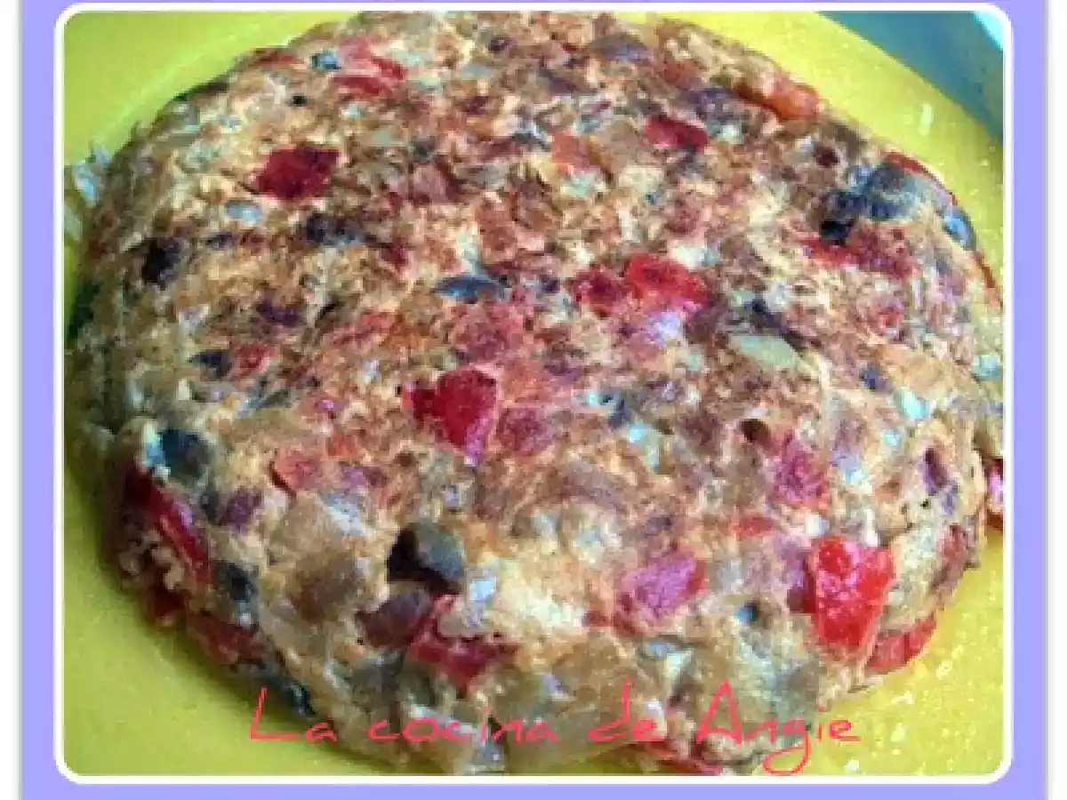 Tortilla paisana AnteriorSiguiente PlatoFácil30 min308 Kcal Enviar esta receta a un amigo Imprimir esta página Preguntar al autor Publicar la foto de esta receta Un bonito ingreso de cenar. Ingredientes 2 aceite 1 berenjena, 1 calabacín, 1/2 pimiento rojo, 1/2 cebolla 1 tomate 1 diente de ajo pinchado taquitos de jamón serrano 4 huevos batidos y coagular la tortilla. Costo estimado: 3.36Euros€ (1.68€/porción)